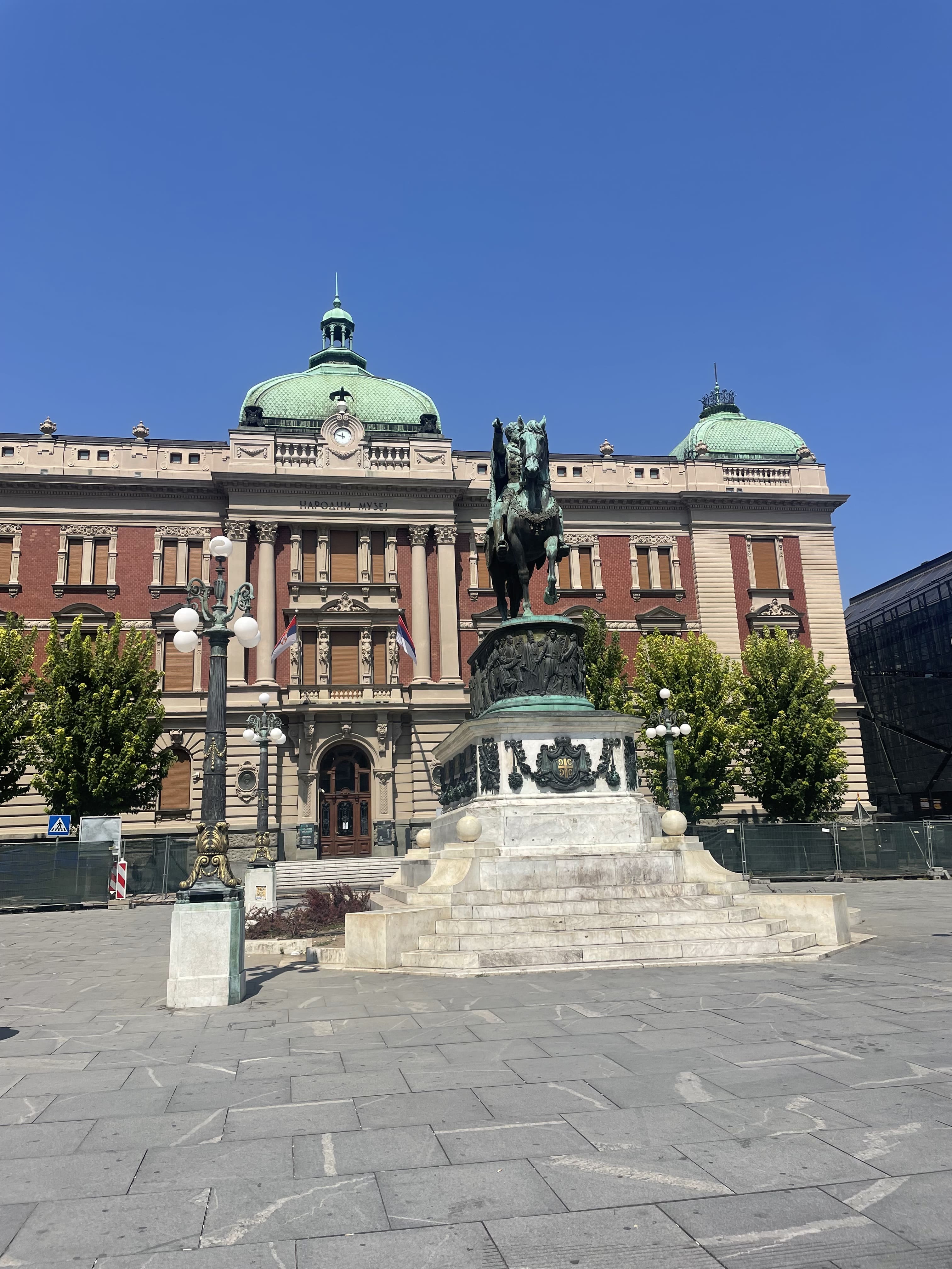 Nous poursuivons dans la célèbre rue piétonne Knez Mihailova, classée comme monument culturel d’importance exceptionnelle, puis sur la Place de la République où se trouve le Musée National. Nous finissons sur la Place des Étudiants, actuellement en travaux.