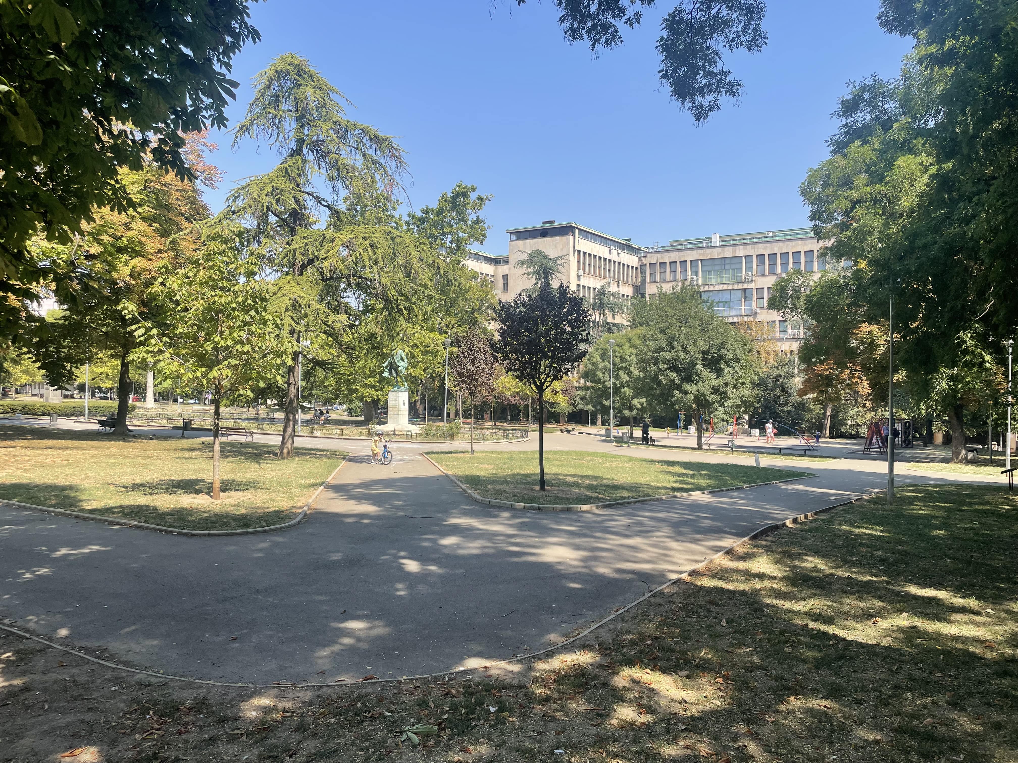 Nous commençons par la forteresse de Kalemegdan, située dans un immense parc du même nom. Cette forteresse, au cœur de l’histoire serbe, est l’un des sites les plus anciens du pays : construite à partir de l’époque romaine, elle fut ensuite modifiée par les Byzantins, les médiévaux serbes puis les Ottomans. Sa position dominante, à la confluence du Danube et de la Sava, était stratégiquement cruciale.