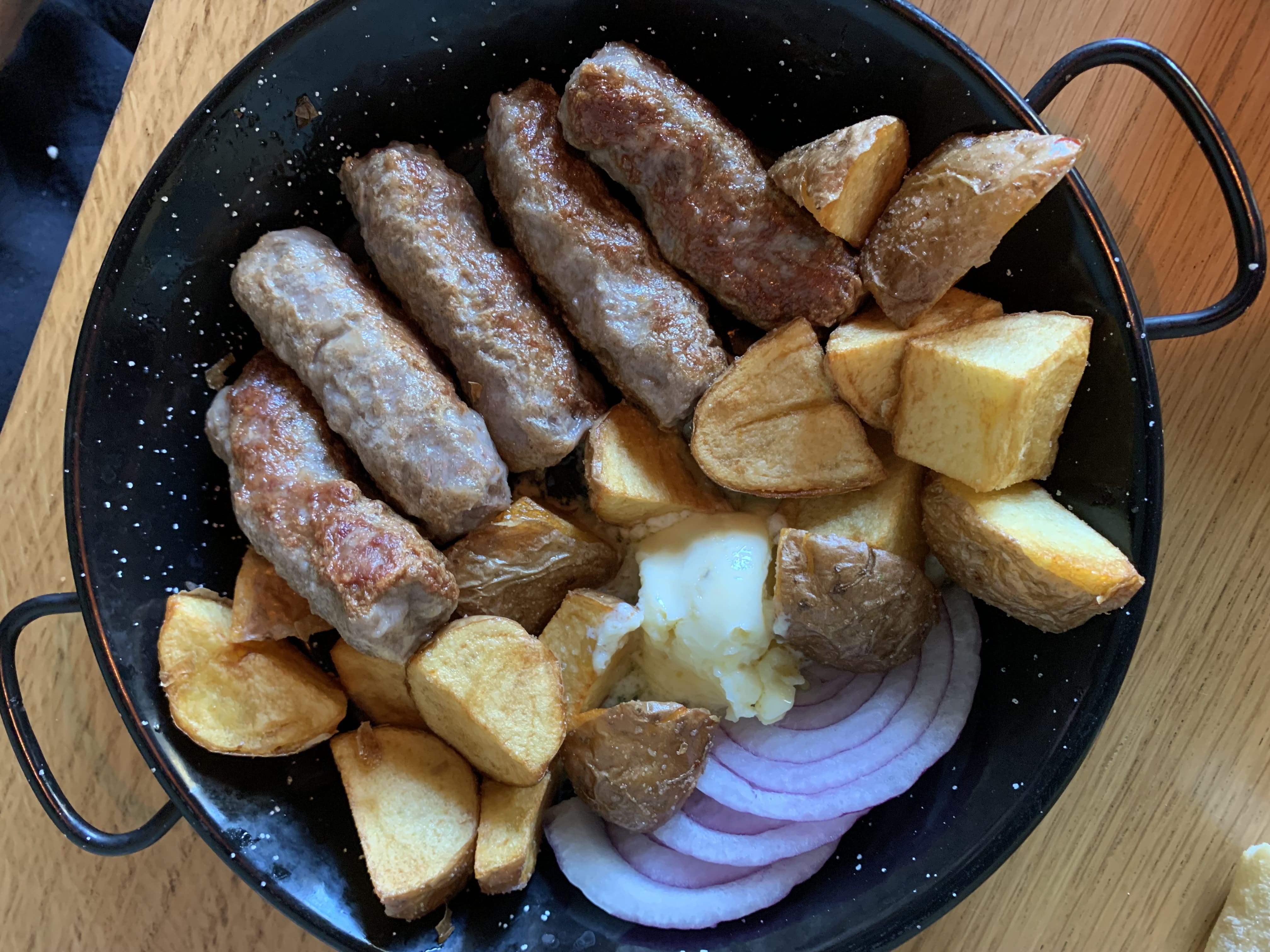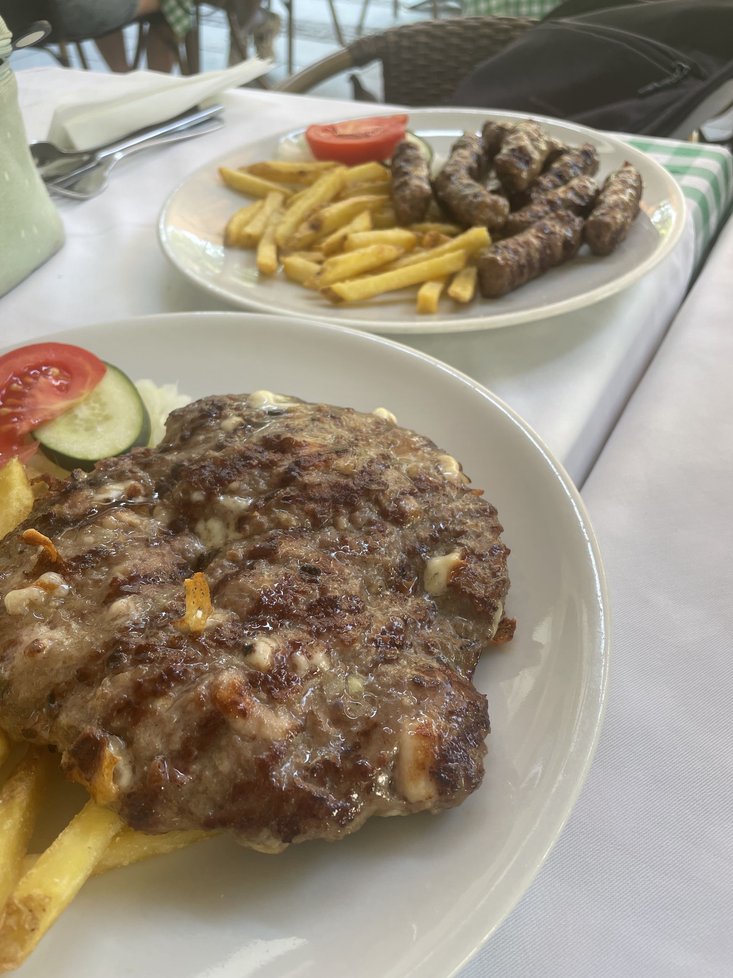 Nous déjeunons chez Proleće, restaurant typiquement serbe. Pour ce premier repas, nous goûtons une assiette d’entrées locales, des ćevapčići (kebabs allongés) et une pljeskavica (mélange de plusieurs viandes hachées grillées).