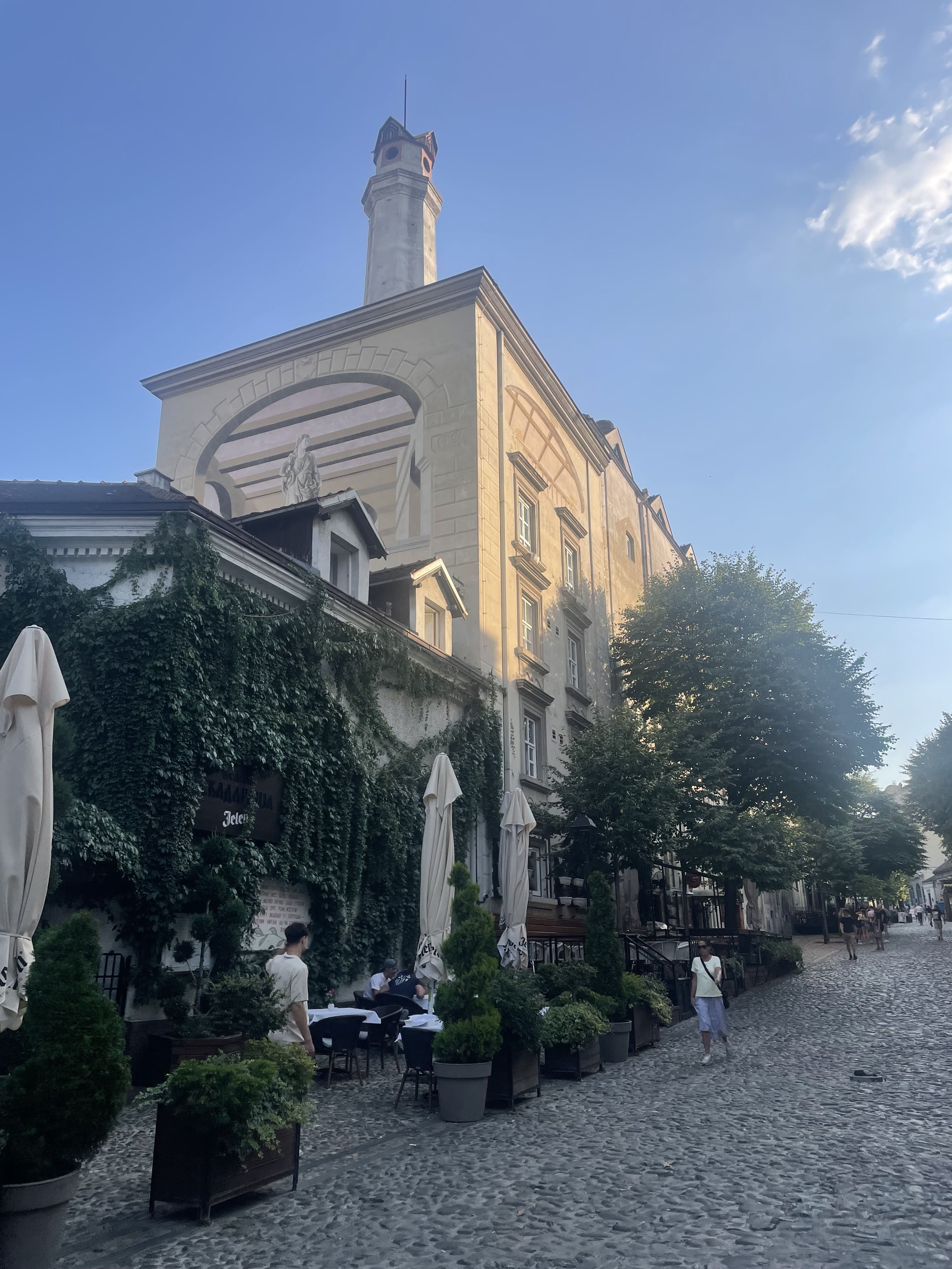 Après le déjeuner, nous visitons l’église orthodoxe Saint-Nicolas, l’une des plus anciennes de la ville, et la rue Laze Telečkog, surnommée « la rue de la soif », connue pour ses bars et son ambiance étudiante. Elle croise la belle rue pavée Mite Ruzica, typique de la Voïvodine.
