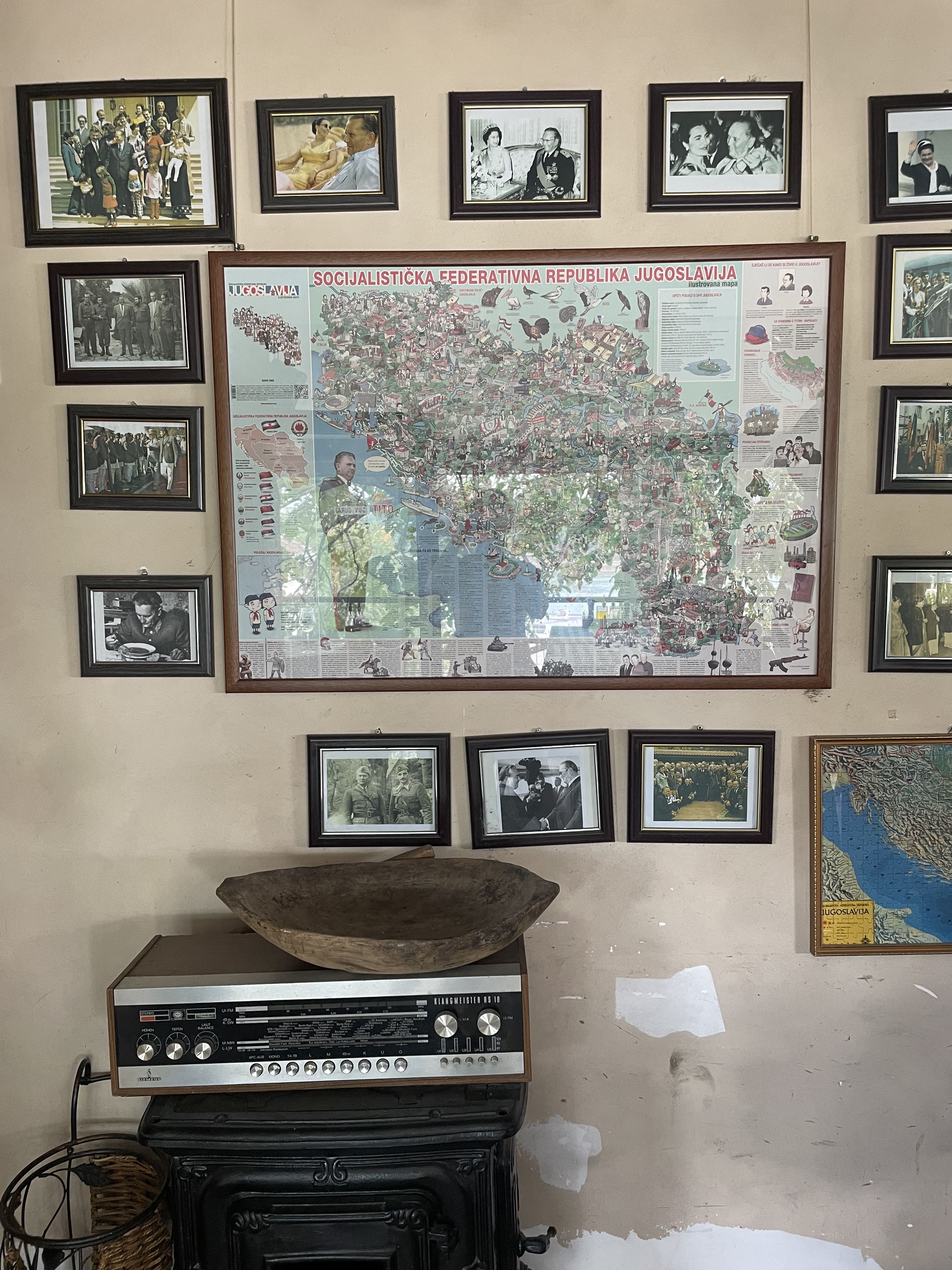 Nous déjeunons ensuite au restaurant SFRJ, au bord de la Sava : sarmas, salade grecque et kobasice (saucisses serbes). L’endroit regorge d’objets historiques liés à l’ex-Yougoslavie.