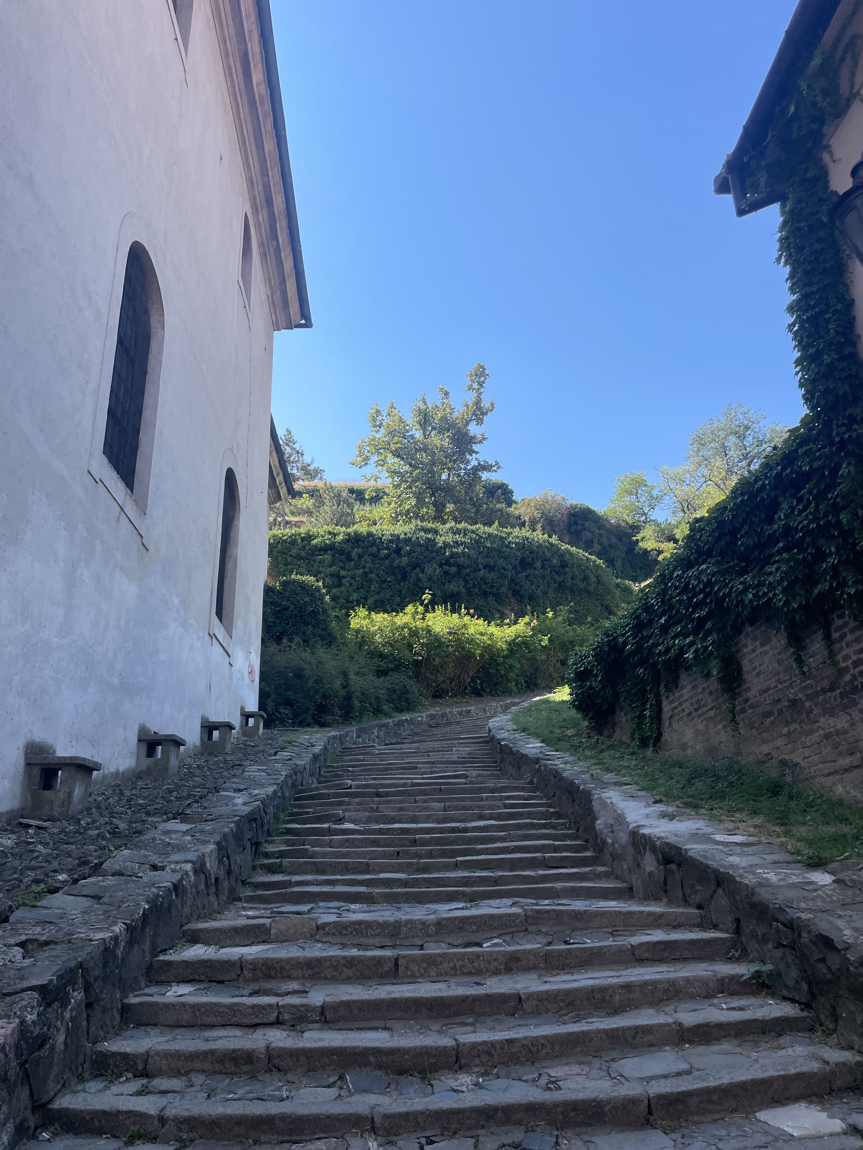 Nous arrivons par Podgrađe, la ville basse, avec ses ruelles anciennes et son église Saint-Georges. Quelques dizaines de marches nous attendent pour grimper jusqu’à la forteresse.