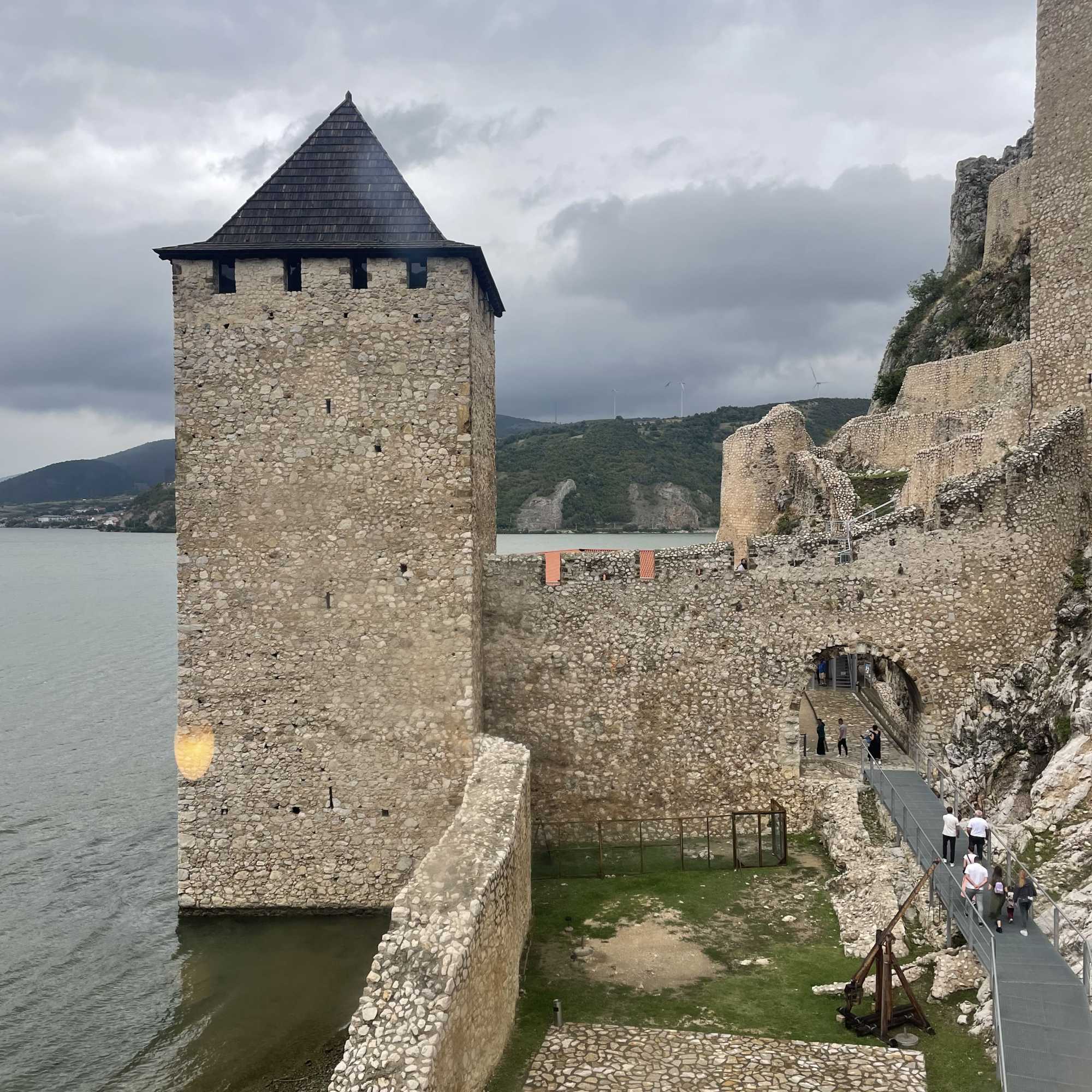 Nous allons ensuite visiter la forteresse de Golubac, située à seulement cinq minutes en voiture. Mais l’orage ayant causé une coupure d’électricité, nous devons patienter un peu avant d’entrer.