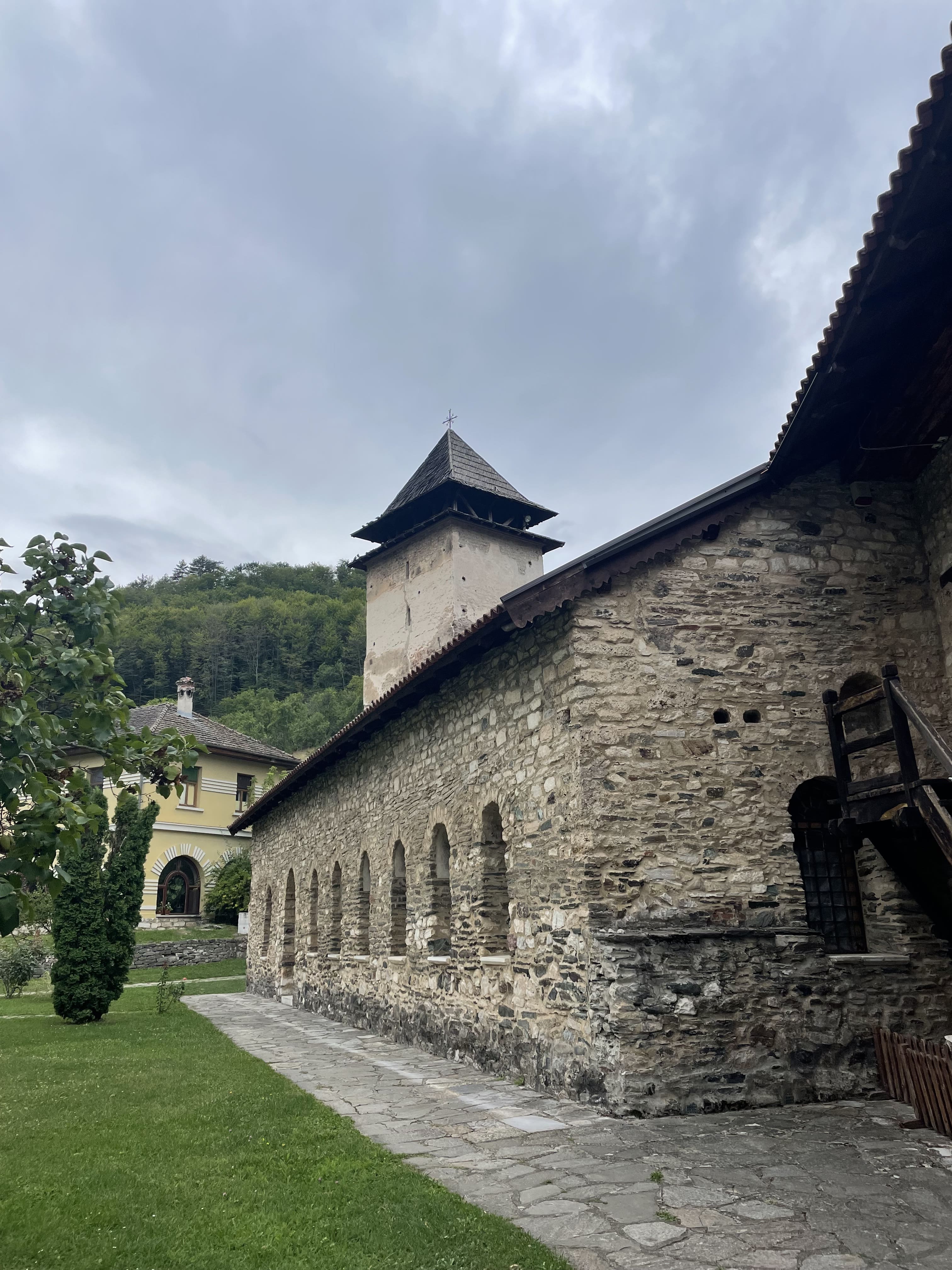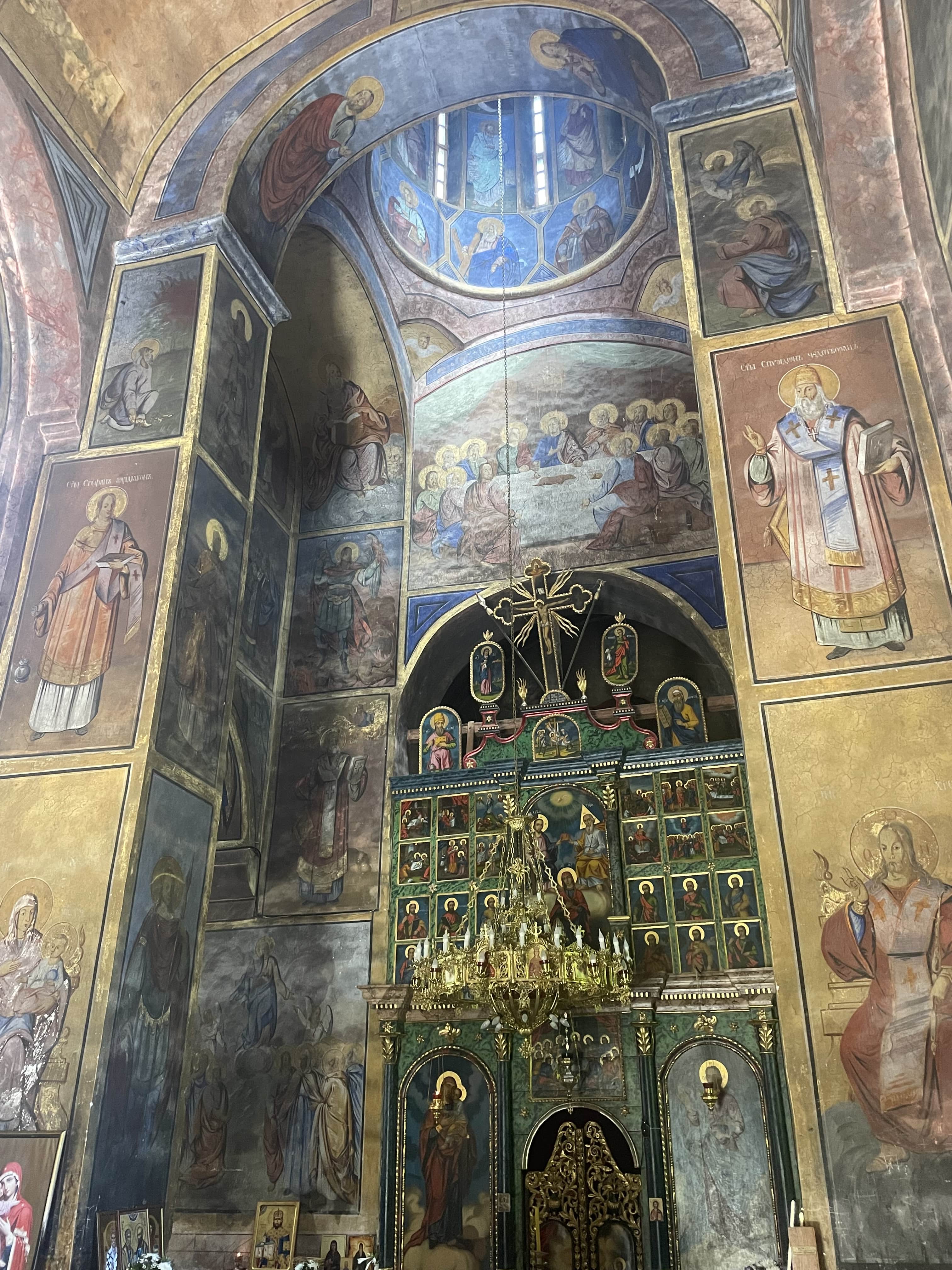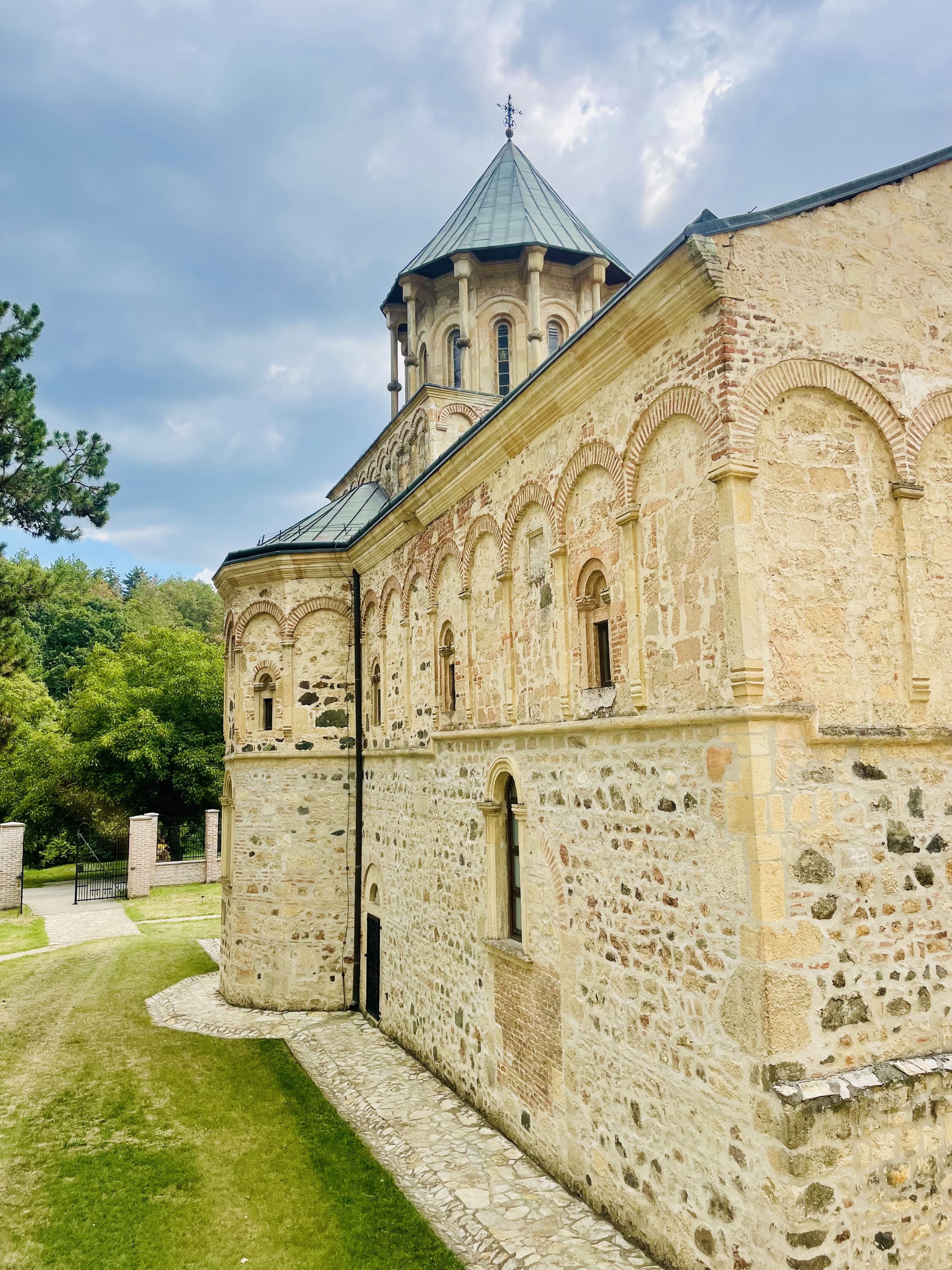 Les extérieurs du monastère sont en travaux, mais cela ne gêne en rien notre visite. L’église, reconnaissable à ses murs rouges caractéristiques, est splendide. L’intérieur abrite des fresques anciennes témoignant du rôle crucial du lieu dans la culture médiévale serbe.