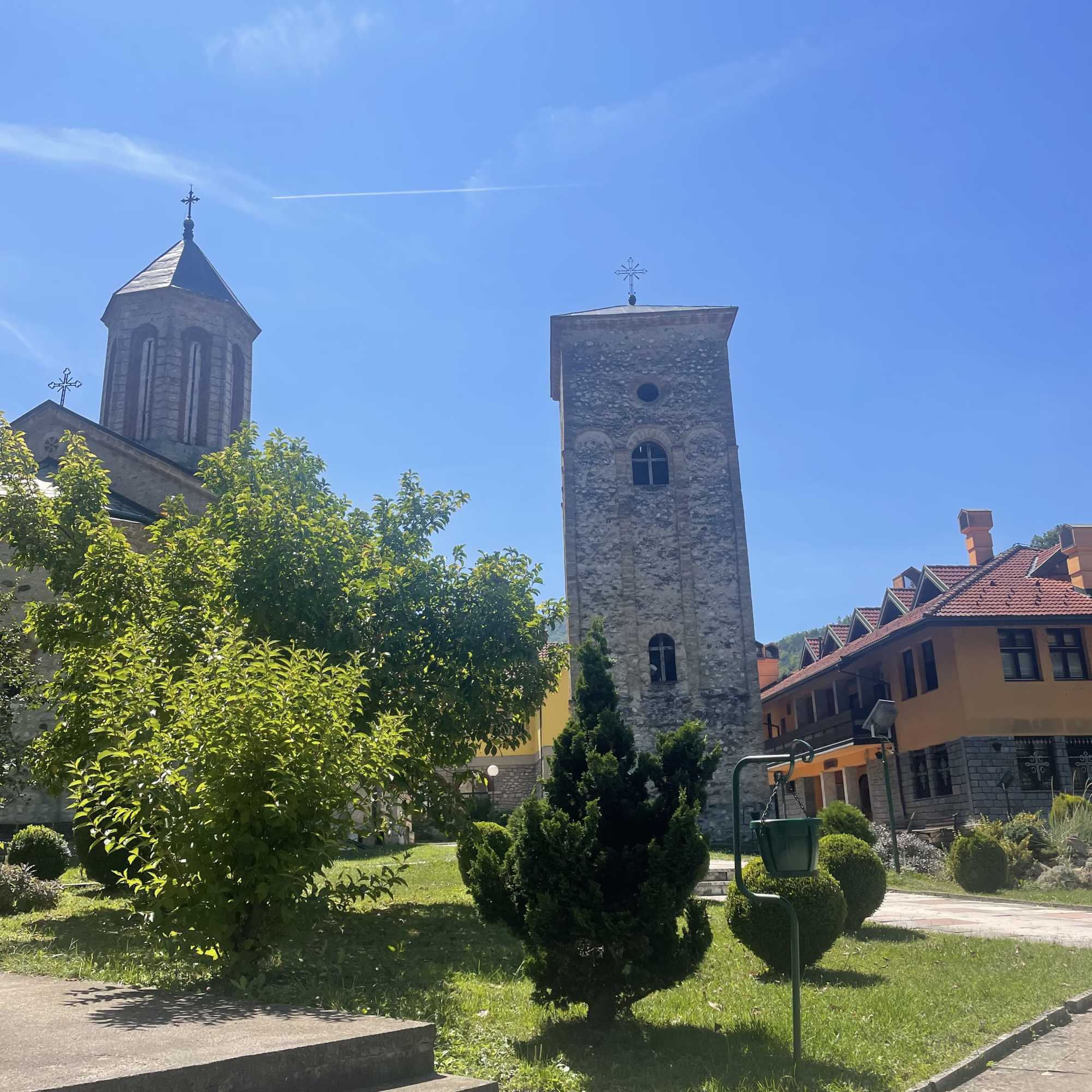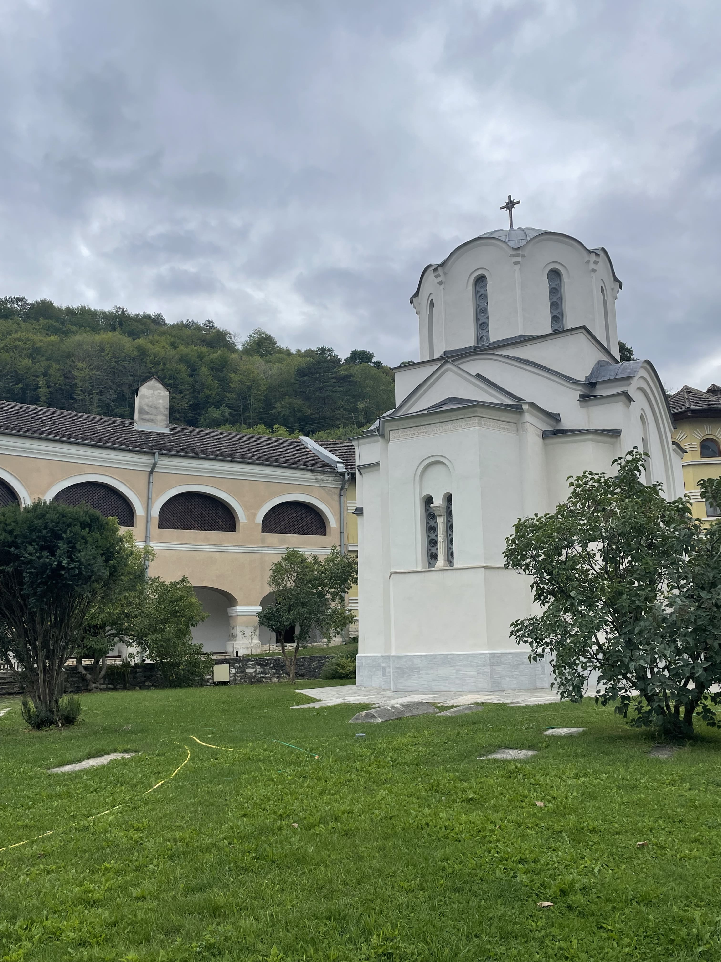 Nous commençons par le monastère de Jazak, qui est le plus proche de notre lieu de résidence, mais nous nous heurtons malheureusement à une porte fermée. Ce monastère, reconstruit au 18ème siècle, est pourtant l’un des plus importants du parc, notamment parce qu’il abrite les reliques du tsar serbe Stefan Uroš V, dernier souverain de la dynastie des Nemanjić.
