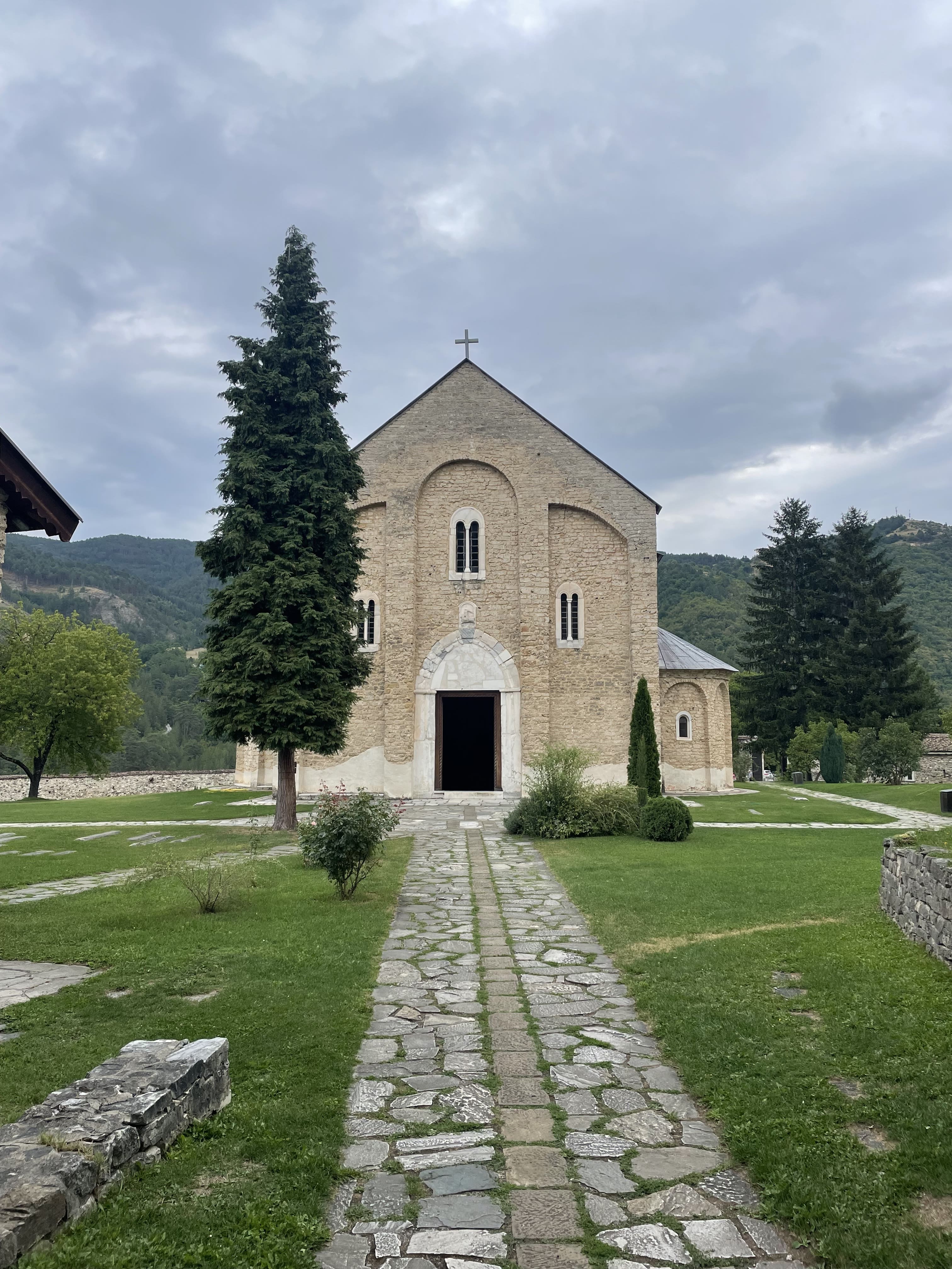 Il nous faut environ une heure pour atteindre Studenica, et nous préférons le visiter en premier car de nombreux touristes locaux s’y rendent. La route est agréable mais parfois étroite, longeant des falaises impressionnantes.