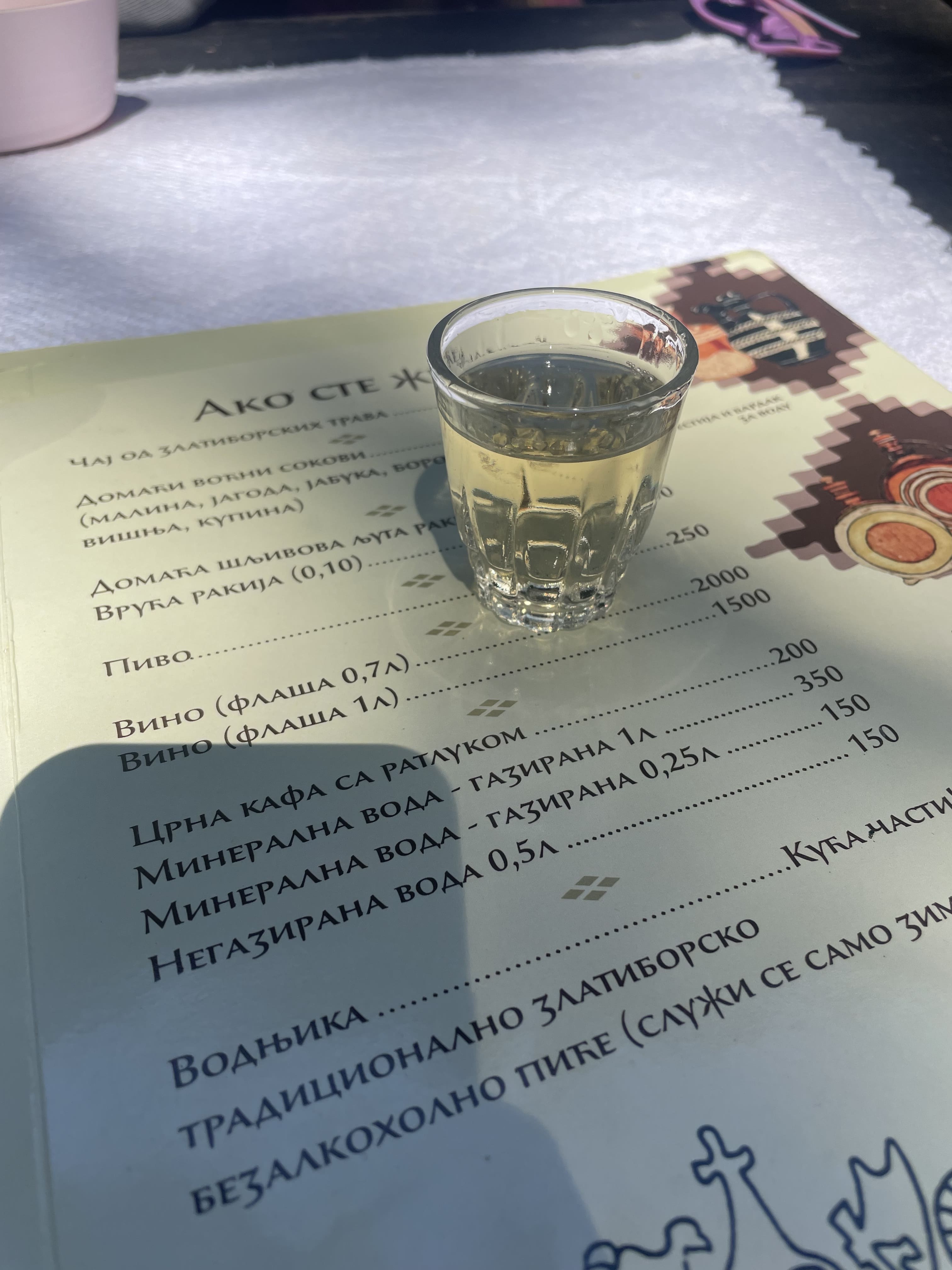 Nous déjeunons sur place au restaurant de l’ethno-village, où nous testons des spécialités locales très typiques : polenta au kajmak, rakija (l’alcool fort national), et des plats rustiques de montagne.