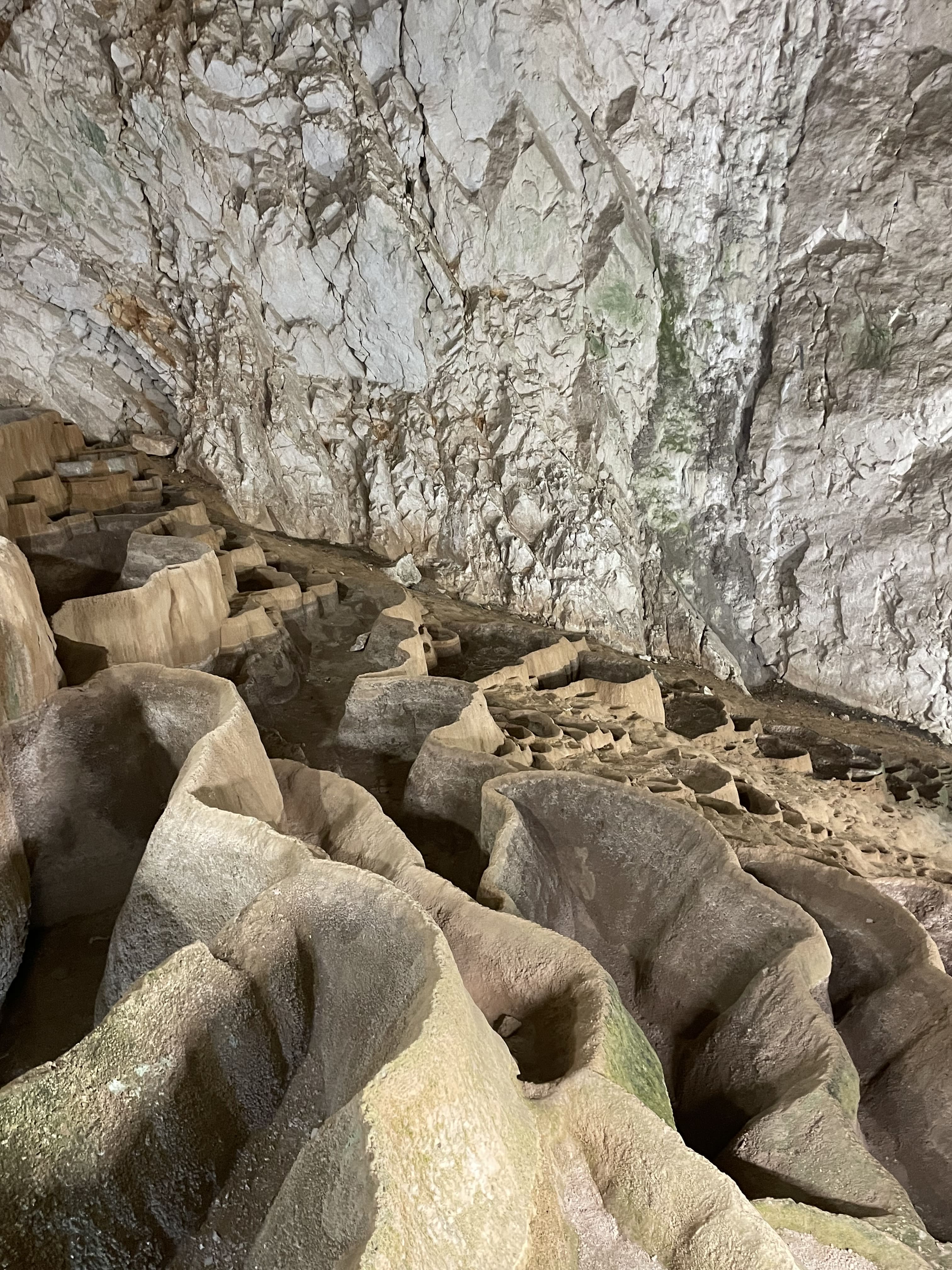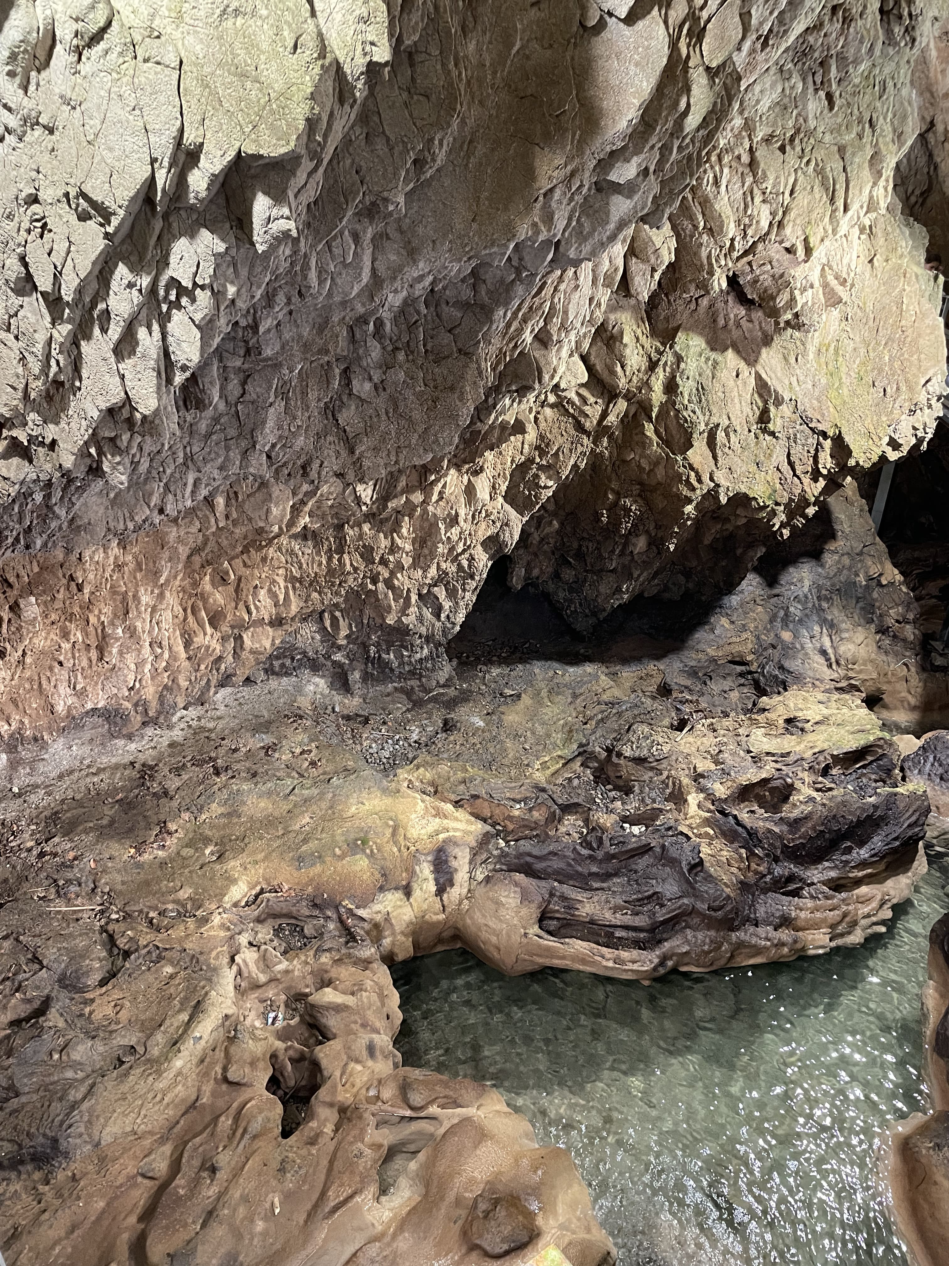 La grotte est connue pour ses “cascades de tufs” — des formations calcaires uniques créant des vasques naturelles étagées. Lors des pluies importantes, ces vasques peuvent se remplir d’eau chaude, ce qui donne un aspect spectaculaire.