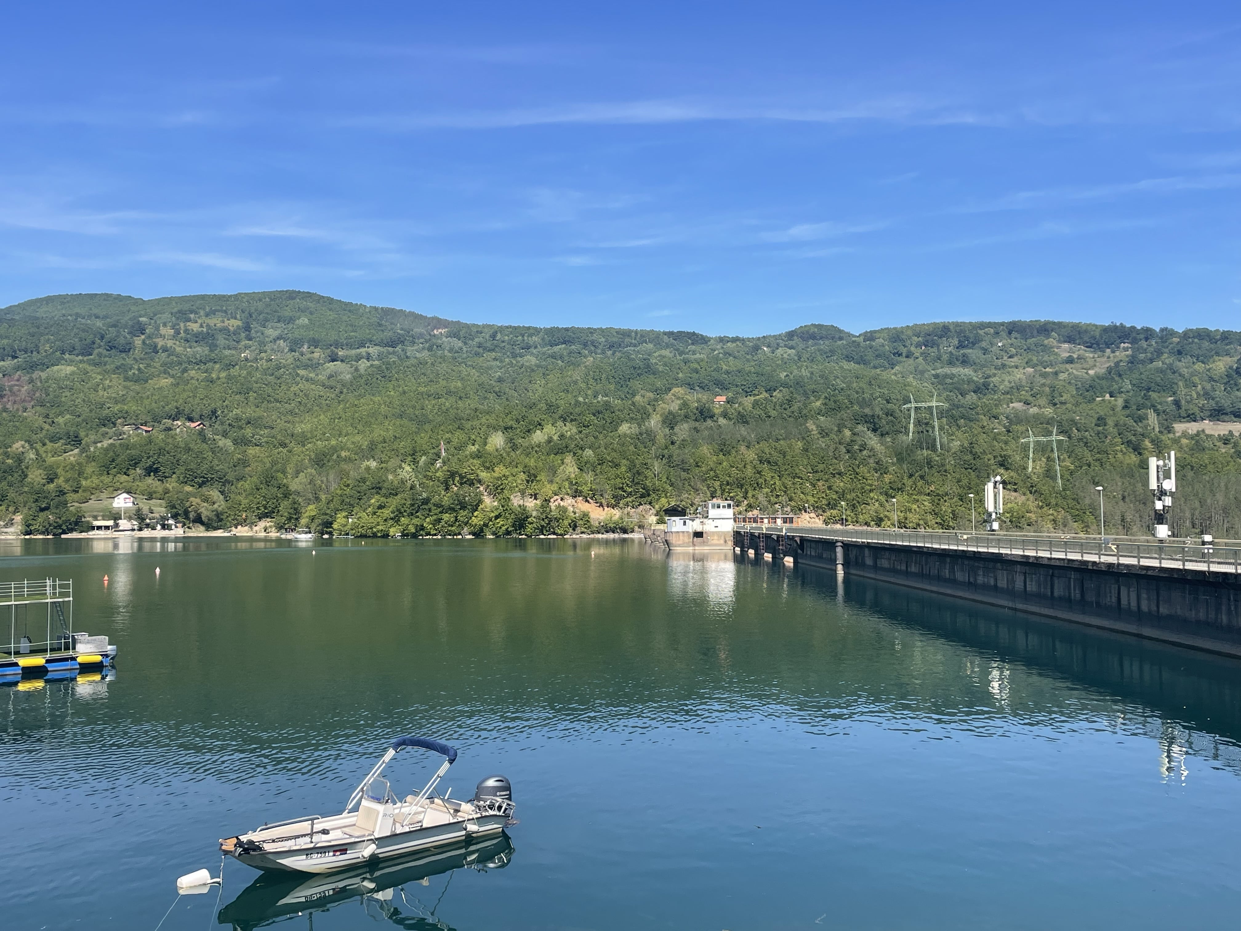 Nous nous dirigeons ensuite vers le barrage du lac de Perućac, qui marque l’entrée officielle du Parc national de Tara. Le lac est artificiel, créé en 1966 sur la Drina, mais il est devenu l’un des plus beaux paysages de la région. Nous payons le droit d’entrée du parc puis montons dans les hauteurs : c’est là que les vues sont les plus spectaculaires, avec le relief découpé du lac entouré de forêts denses.