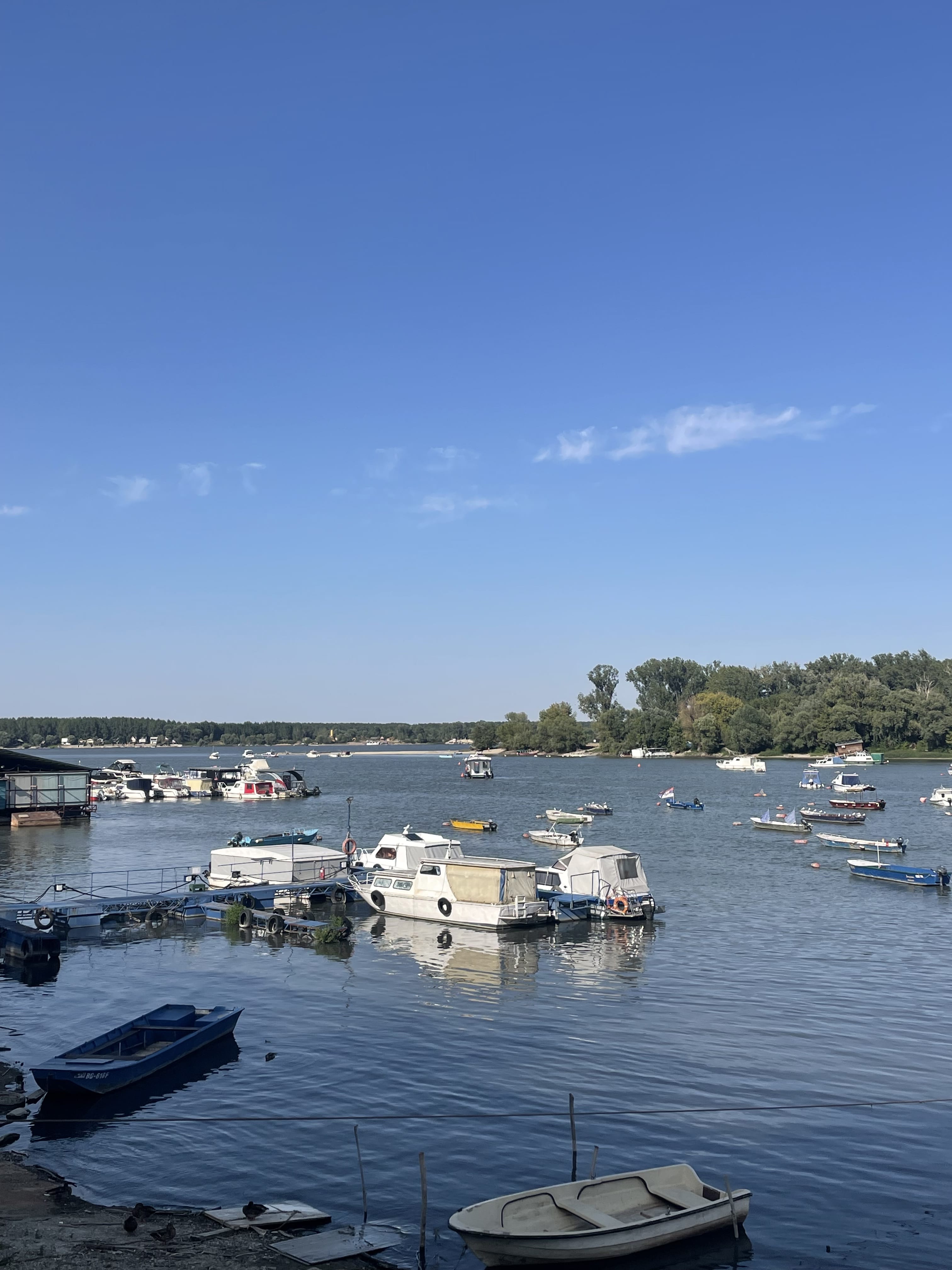 Nous quittons la station de Zlatibor vers 9h30, car nous avons environ 2h30 de route jusqu’à Belgrade. Nous faisons le trajet d’une traite et décidons de faire une pause sur l’île d’Ada Ciganlija, située sur le fleuve Sava. L’île est entièrement piétonne (des parkings sont à l’entrée), et aujourd’hui c’est l’un des espaces de loisirs les plus populaires des Belgradois. On l’appelle même parfois “la mer de Belgrade” : plages, sports nautiques, pistes cyclables, restaurants, cafés… tout y est. Nous avions prévu de manger sur place mais ne trouvons rien d’intéressant, alors nous préférons pique-niquer face à l’eau.