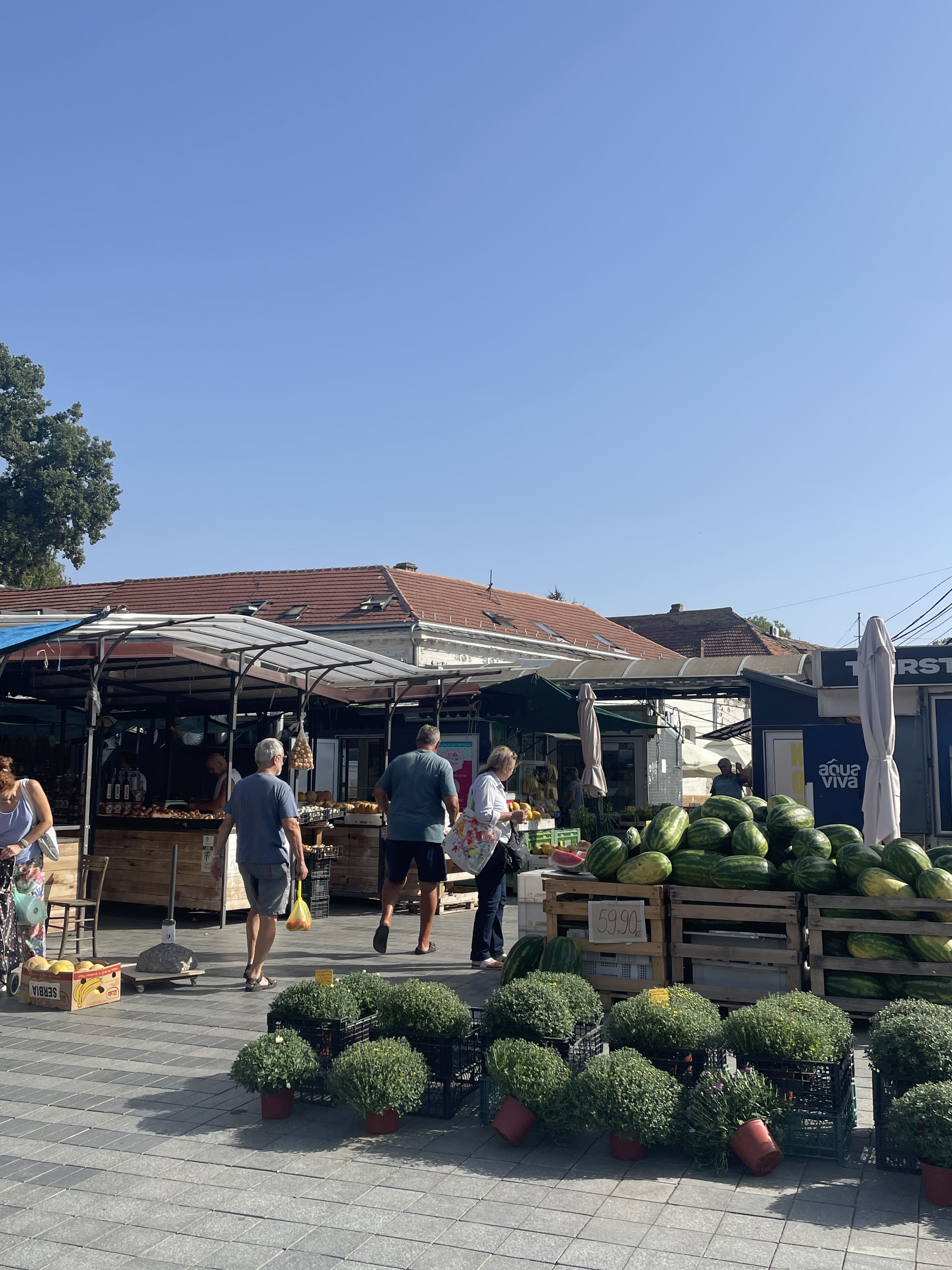 Il ne nous reste qu’une matinée pour profiter encore un peu de Belgrade, et nous décidons de faire une dernière balade dans Zemun. Après le petit-déjeuner, nous allons voir le marché, en pleine effervescence : c’est le seul véritable marché que nous aurons l’occasion de voir durant tout le séjour, et l’ambiance locale est très agréable.