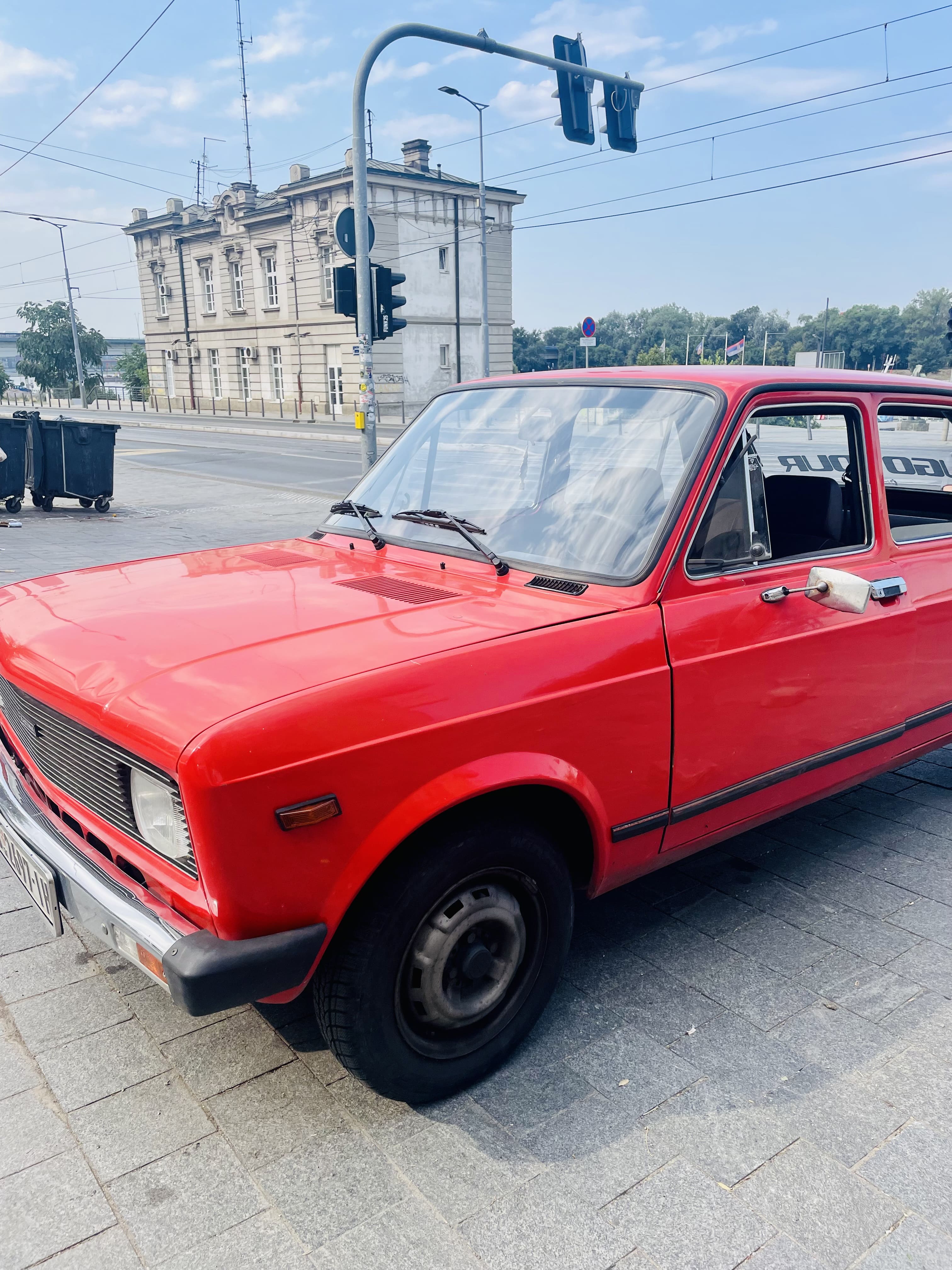Après un passage au Rocket Coffee, nous montons dans une Zastava rouge, voiture emblématique de la Yougoslavie, produite à Kragujevac sur la base d’un modèle Fiat.