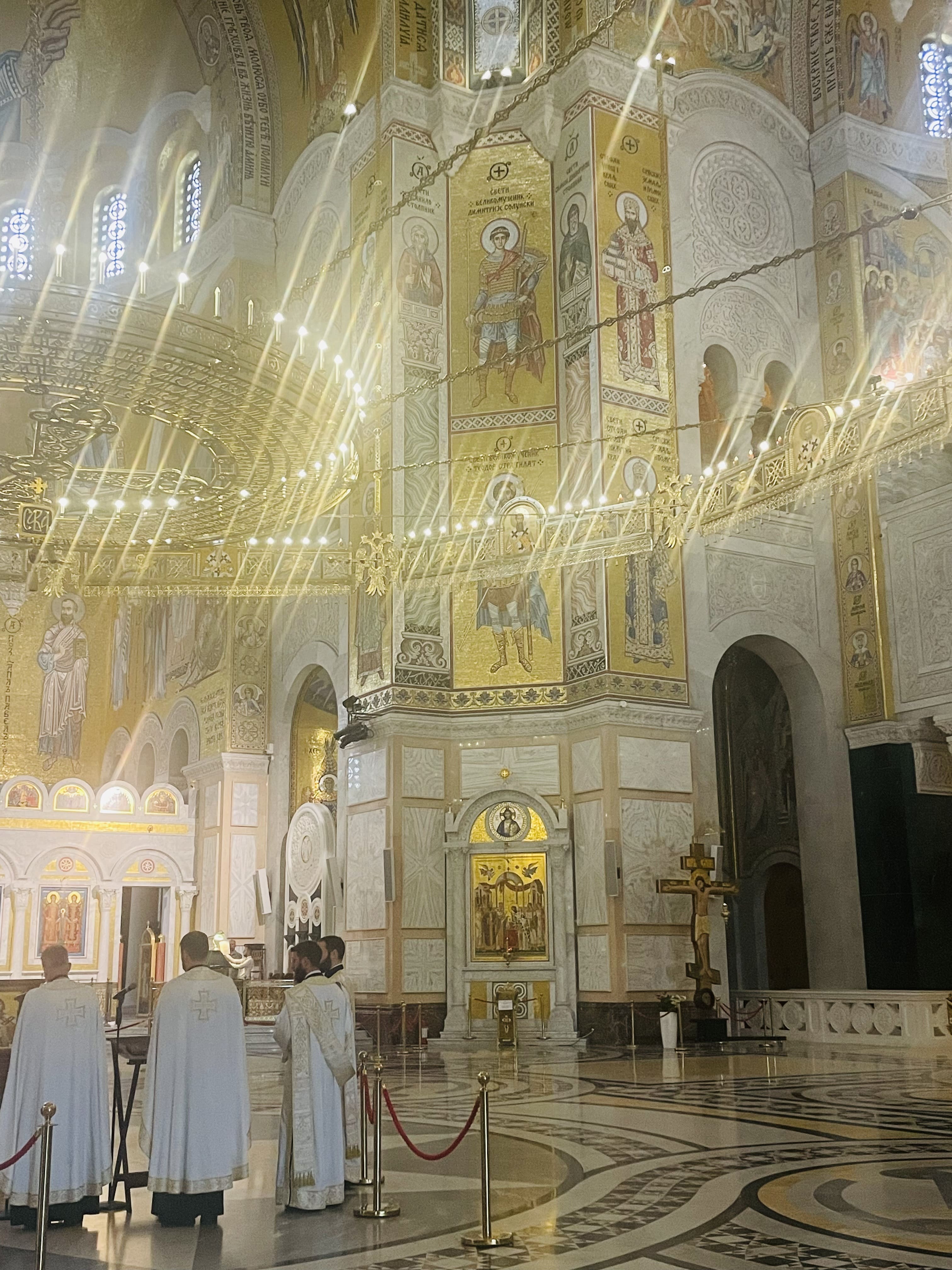 L’après-midi, nous visitons le Temple de Saint-Sava, l’une des plus grandes églises orthodoxes du monde, dédié à Sava, fondateur de l’église orthodoxe russe. Nous avons eu également l’occasion d’aller au temple en ancien tramway (ligne n°10). Son architecture s’inspire de la basilique Sainte-Sophie de Constantinople. Les mosaïques intérieures sont monumentales. Nous y assistons même à une messe. Le temple récemment terminé a été financé par le Kremlin.