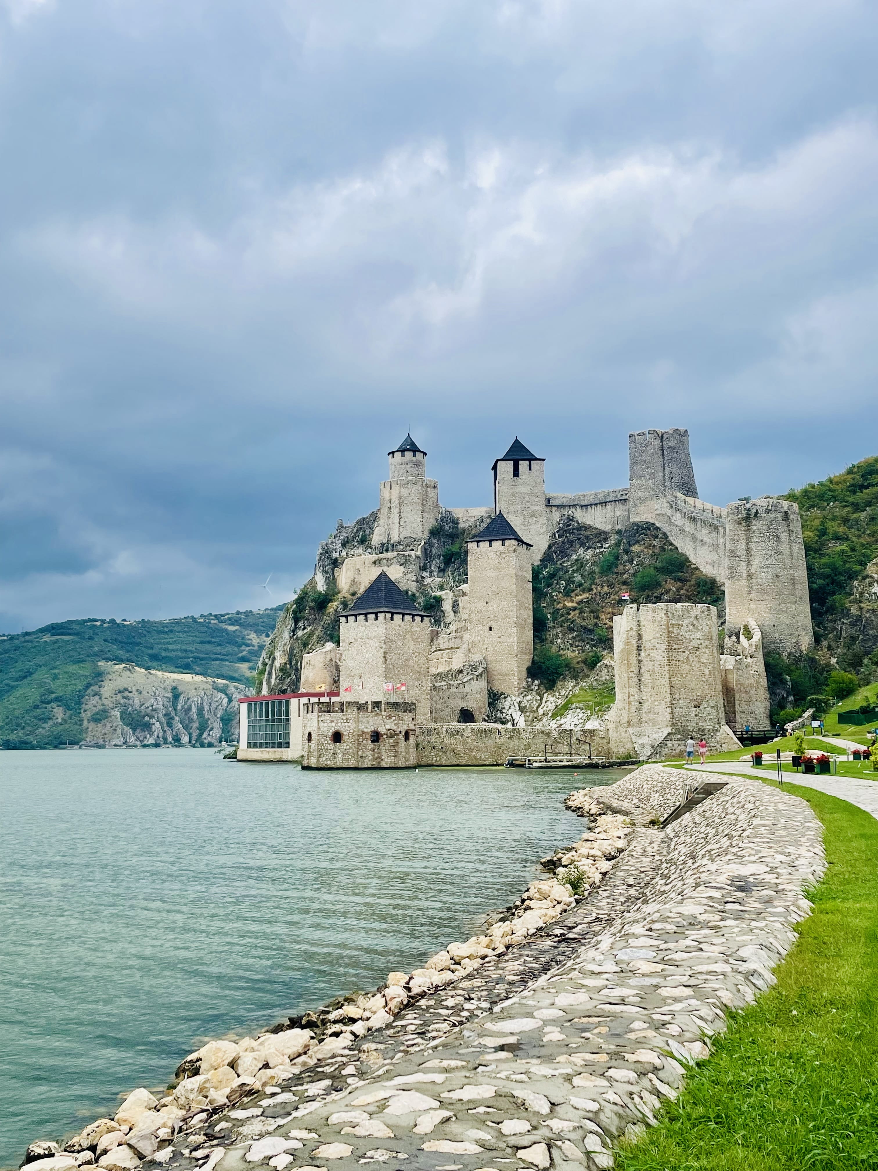 La forteresse de Golubac, récemment restaurée grâce à un financement de l’Union Européenne, est l’une des plus belles fortifications médiévales de Serbie. Construite au 14ème siècle à l’entrée des Portes de Fer, elle contrôlait autrefois le passage sur le Danube. Ses neuf tours, de hauteurs et styles différents, trônent spectaculairement au pied des falaises. Il existe plusieurs parcours de visite, classés par niveaux de difficulté : certaines tours exigent une bonne forme physique et un équipement spécial. Avec un enfant, nous nous arrêtons au premier parcours, mais cela suffit largement : nous pouvons voir trois tours ainsi que l’ancien palais, tout en profitant d’une vue splendide sur le fleuve. Nous terminons notre journée en nous baladant dans les jardins le long du Danube.