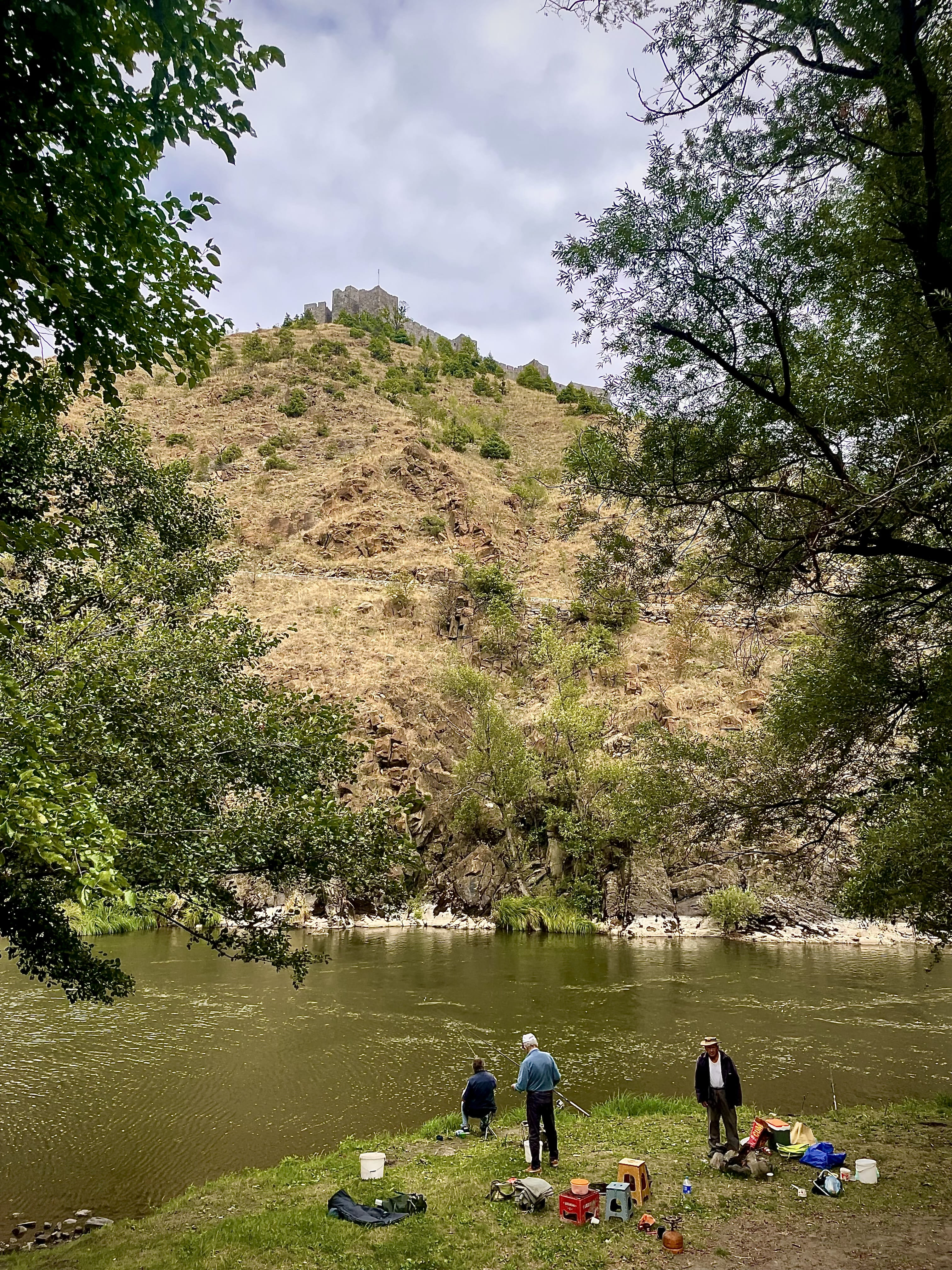 Sur le chemin du retour, nous nous arrêtons en contrebas de la forteresse de Maglič, perchée sur une colline au-dessus de la vallée. Construite au 13ème siècle pour protéger l’accès à Studenica, elle est considérée comme l’un des plus beaux châteaux médiévaux du pays. Pour y accéder, il faut normalement traverser la rivière Ibar à l’aide d’un petit bac géré par des bénévoles, puis grimper un sentier pentu. Mais vu l’heure avancée et le caractère irrégulier des traversées, nous préférons ne pas tenter l’ascension.