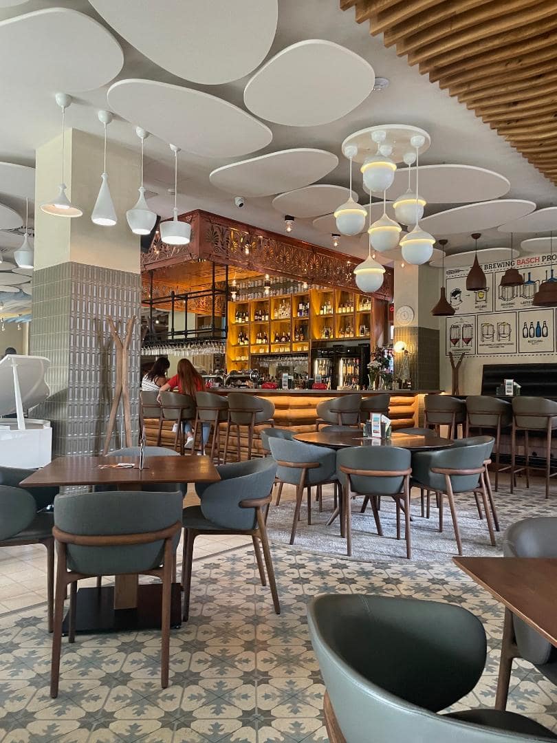 Après cette immersion dans le passé, nous déjeunons en centre-ville, dans un restaurant typiquement local, Jamb. Le menu, non traduit, nous offre quelques saucisses, kebabs et salades — simples, goûteuses, à des prix très abordables. Nous prenons même un doggy bag pour notre repas du soir.