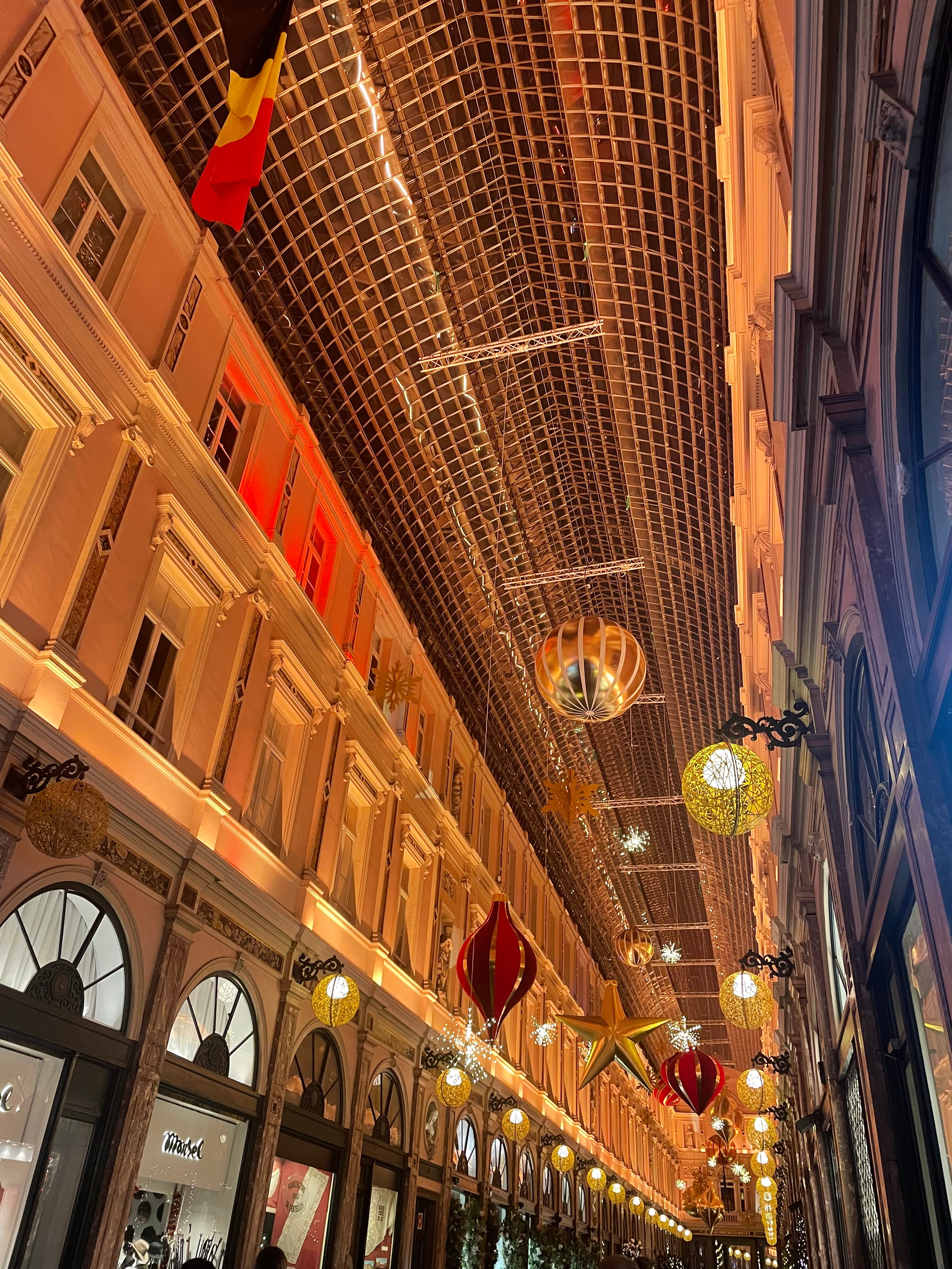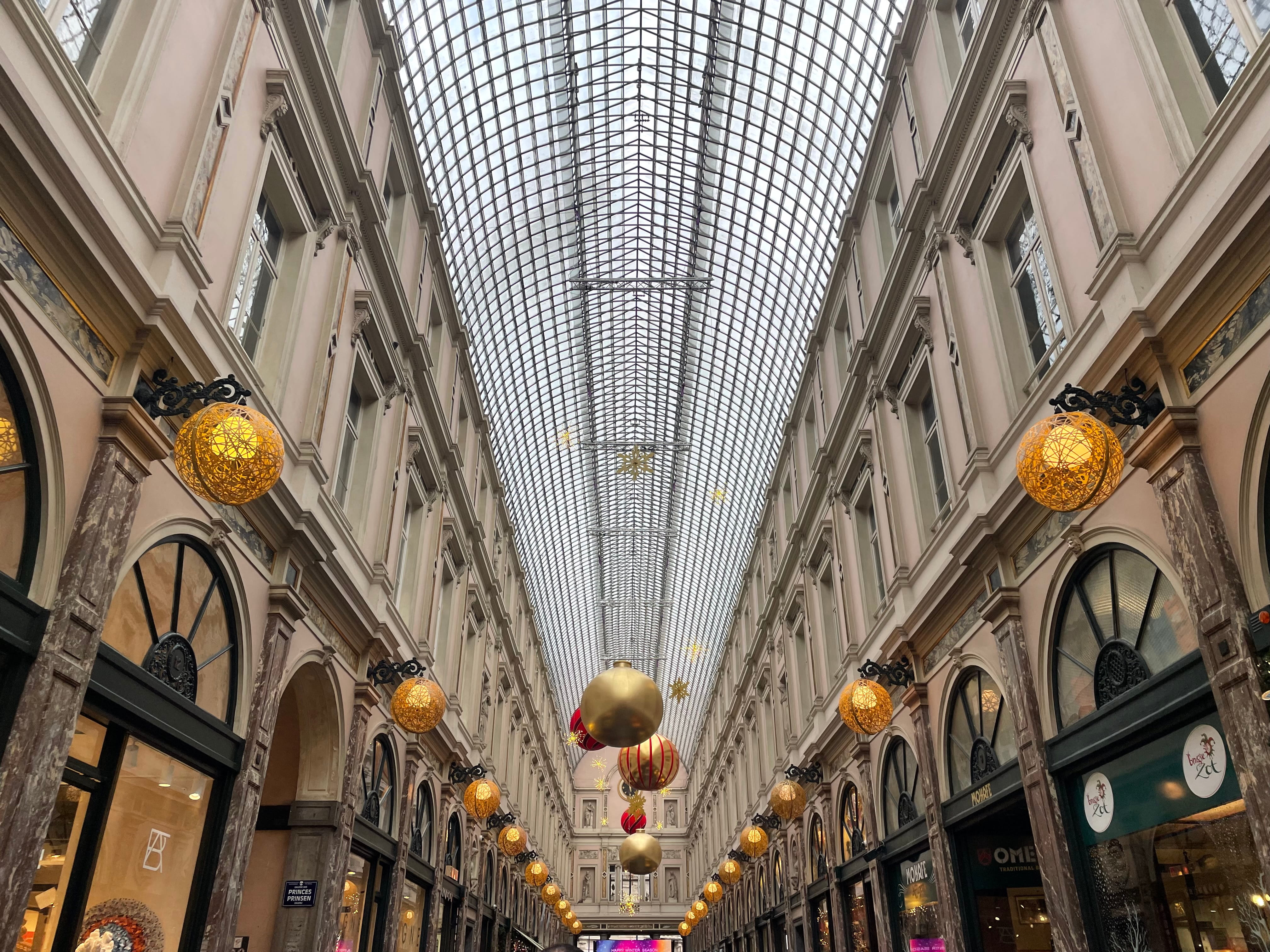 Ces galeries couvertes du 19ème siècle, inspirées des Palais Italiens, sont un véritable bijou architectural. Elles sont composées de la galerie de la Reine, celle du Roi et celles des Princes. Elles abritent boutiques de luxe, chocolatiers célèbres, librairies et cafés historiques. Elles sont couvertes sur toute la longueur par une verrière métallique.