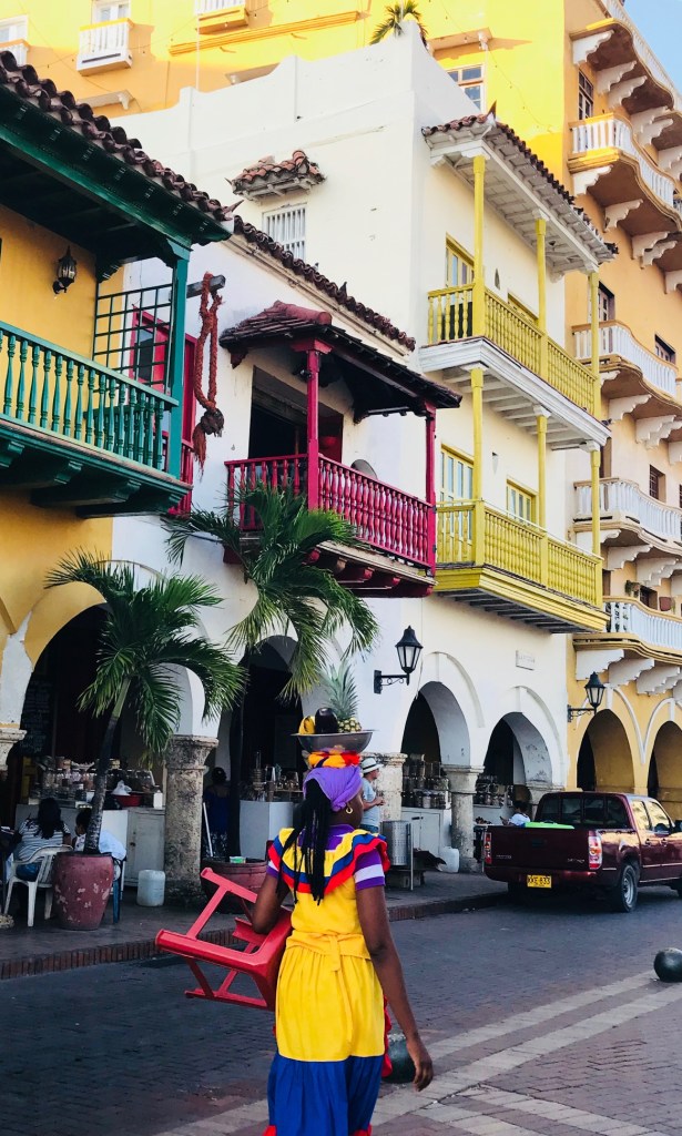 Mais le plus beau à voir, ce sont bien les bougainvilliers en fleurs qui couvrent les maisons déjà elles-mêmes colorées. A ne pas manquer dans Cartagena, las Palenqueras, ces femmes habillées de leurs robes jaunes et portant leur panier de fruits sur la tête.