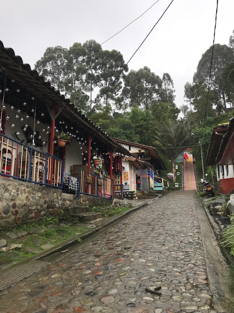 De retour à Salento, nous montons au mirador de la ville et nous baladons dans les rues, dont les maisons et les bâtiments sont typiquement paisas, qu’on peut traduire par « paysan ». En Colombie, une vraie différence est marquée entre les Paisas (les habitants de la région Paisa, donc de Medellín et de la Zona Cafetera) des autres régions du pays (Bogotá ou Cartagene par exemple). Nous en profitons bien sûr pour acheter du café. Nous dînerons dans un resto hyper sympathique appelé El Rincon de Lucy. Pour seulement 8000 COP, nous avons une soupe, une assiette complète avec arepas, chorizo, banane plantain, beignet, salade et un jus.