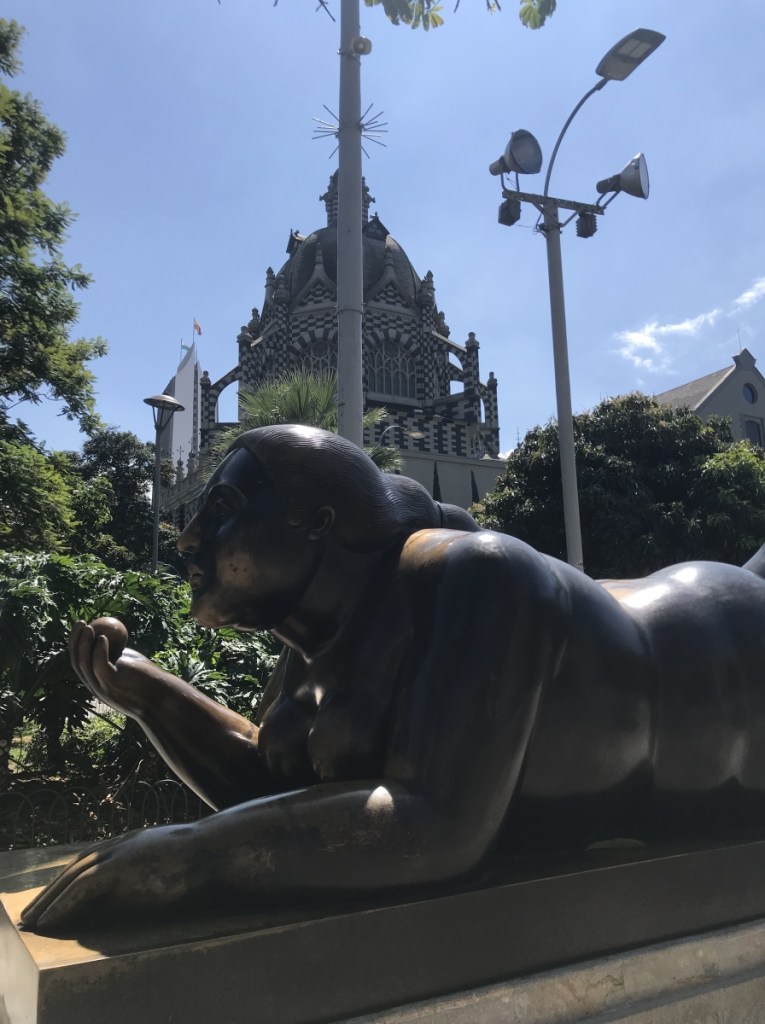Ce matin est consacré au centre historique de Medellín, appelé aussi la Candelaria. Nous prenons le métro à nouveau à El Poblado pour descendre cette fois-ci à Albujaira pour faire un tour complet qui nous était proposé par le guide, nous passons donc par le centre d’affaires, le quartier administratif, la Plaza Cisneros, la tour Coltejer (aujourd’hui centre commercial), l’ancienne gare ferroviaire puis la plazoleta de las Esculturas avec ses 23 fameuses statues de Fernando Botero, le célèbre artiste Colombien (dont la Gorda) ainsi que le Musée d’Antioquia et le Centre Culture Rafael Uribe Uribe. Nous trouvons un petit restaurant appelé El Fogon Paisa avec un super menu à 8000 COP seulement.