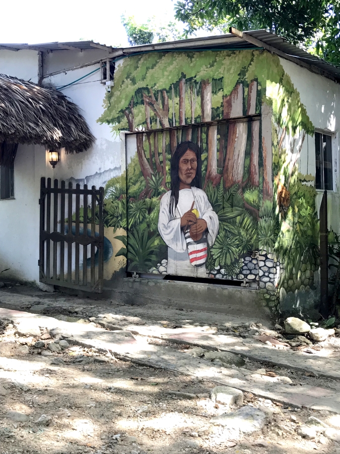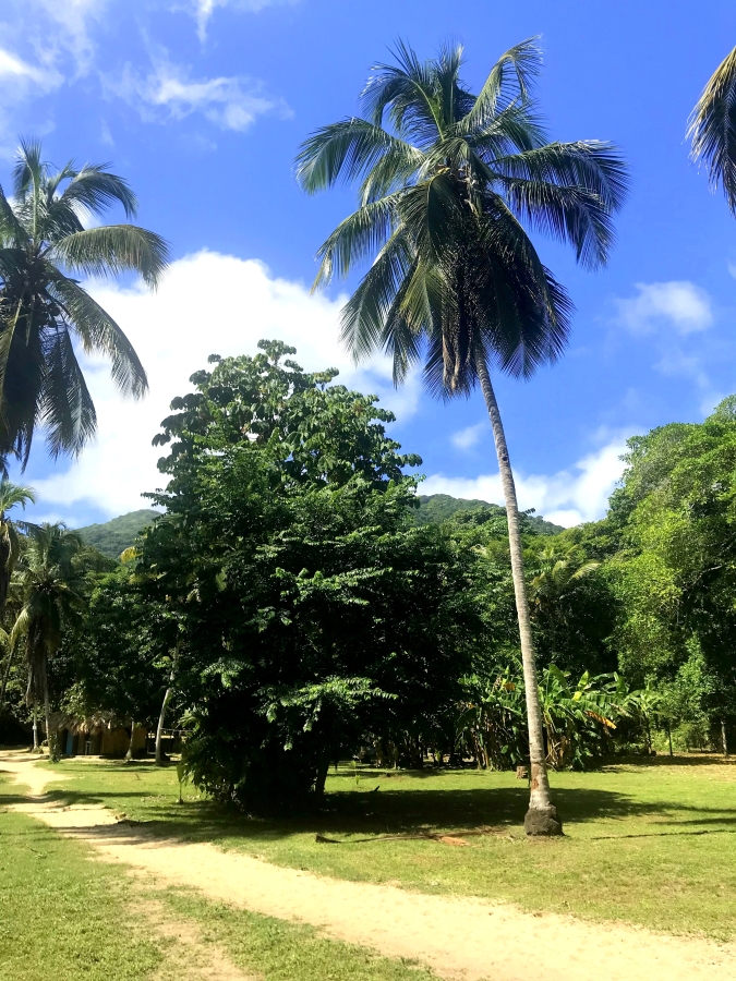 Il nous amène tout droit à l’entrée du parc de Tayrona, à El Zaino. El Parque de Tayrona est l’un des parcs nationaux de Colombie et certainement l’un des plus prisés. Il faut savoir que 12% du territoire Colombien est occupé par les parcs nationaux. Pour le résumer, c’est la rencontre de la forêt et de la jungle, la Sierra Nevada, avec une altitude allant jusqu’à 900m avec la mer des Caraïbes, ses eaux cristallines et sa température avoisinant les 30 degrés. La région était habitée par le peuple des Taironas dont nous pouvons encore voir les vestiges. A noter, le parc ferme ponctuellement 3 fois dans l’année, les indigènes souhaitant nettoyer spirituellement le parc. Il ne faut donc pas oublier en entrant ici que nous sommes sur un lieu sacré.