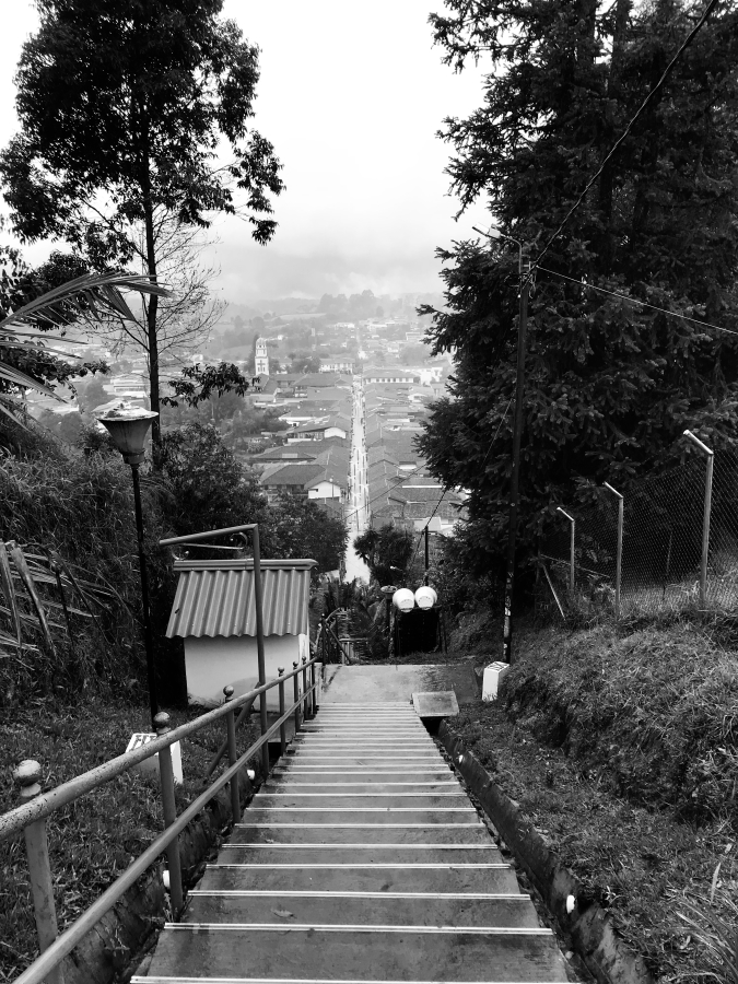 Nous quittons Bogota très tôt car nous avons réservé un vol pour Armenia. Nous avons voyagé plusieurs fois par avion car en Colombie, les distances sont longues et je déconseille vivement les trajets en bus, nous n’en avons fait qu’un et avec le recul cela nous a pris trop de temps. Arrivés à l’aéroport, nous devons prendre un premier bus pour le centre-ville d’Arménia puis un second qui nous mènera à Salento, dans la Zona Cafetera. Il nous faut plus d’une fois demander notre chemin ou le bon bus car rien n’est indiqué. D’ailleurs, à Salento, le chauffeur ne marque pas l’arrêt et devons donc demander à nous arrêter alors que nous sommes déjà en sortie de ville.